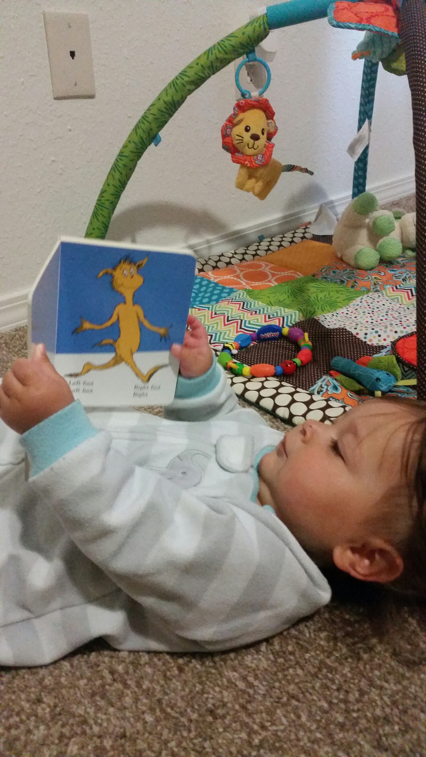 - Crawling off things (the bed, the couch, anything she can. Hopefully she out grows this fearlessness soon!)