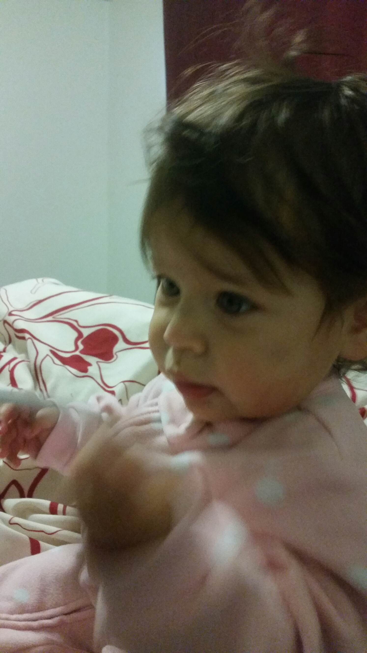 BB has been a firecracker these last few days. I say that with the very most love I can. On Saturday she got to hang out with dad almost all day. She loves when she gets just her and dad time. I love it too, I honestly thing that the best thing in the worl is observing her and D. He is so good with her and she loves him so much. Anyways, on Sunday she was not ready for that time to be over. She was all about her dad. I am fairly positive that if she still didn’t rely on me for food she would have never gone to me all day. I had a little bit of a hard time as this was the first time I was really rejected by her but I know that it’s only going to get more heartbreaking and so I tried to take it as best I could. Since then she is still all about D but at least doesn’t break out in tears as soon as he hands her over to me or puts her down. Additionally, she has been very clingy the last week. There have been a few pretty big changes around here as well as we think she might FINALLY be getting some teeth… maybe.