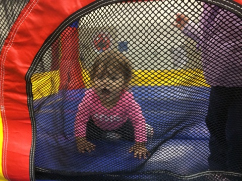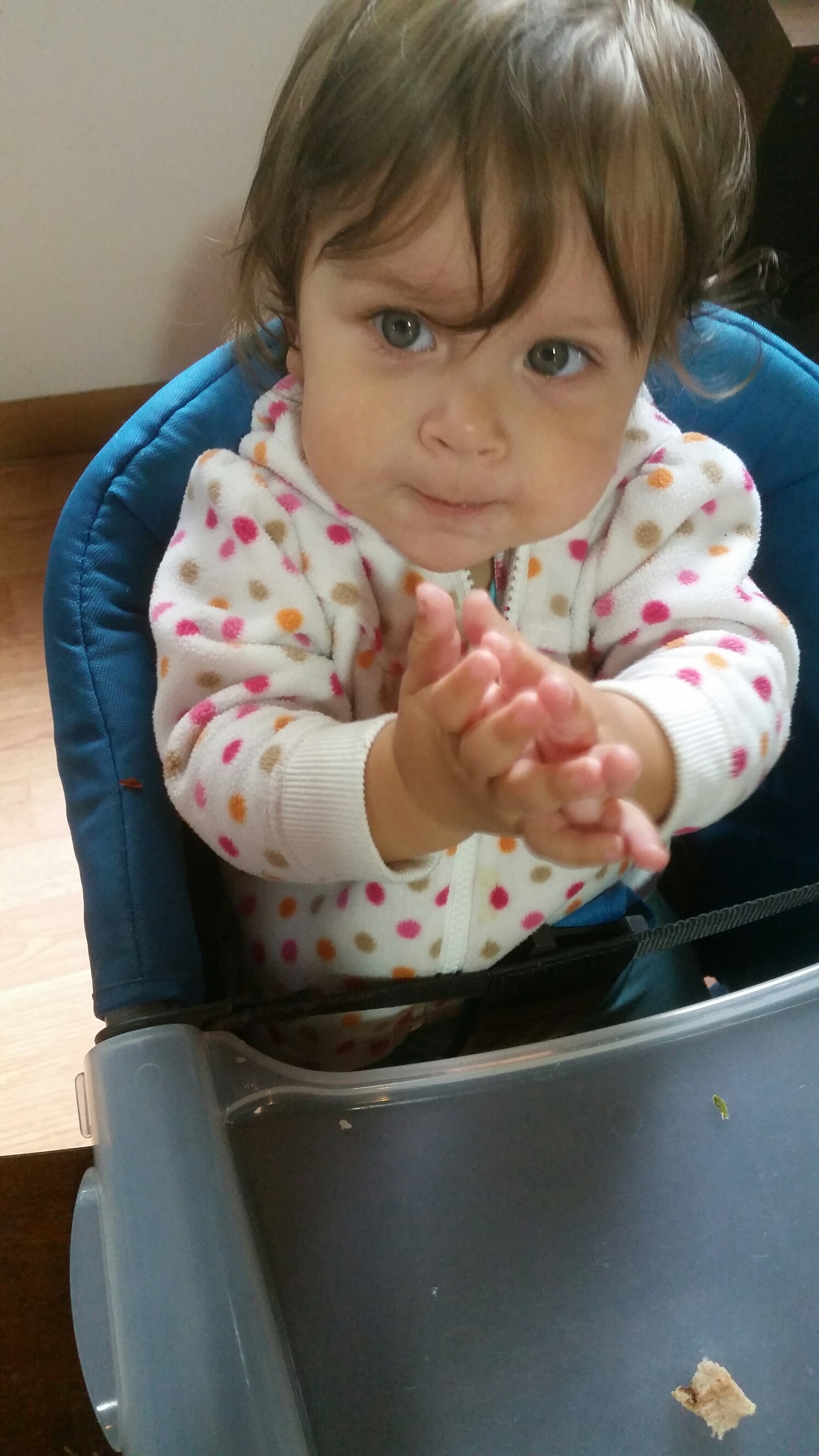 She also lately has been trying to make new sounds. She really likes to go blahla blahla blahla blahla, and rolling her r’s. She is such a character. She also loves to talk into cups. The first thing she does when she get’s an empty cup is to yell into it and see what she sounds like. She likes to cover her mouth and yell moving her hand back and forth to her mouth. Basically she has a lot to say and she is not shy expressing herself.