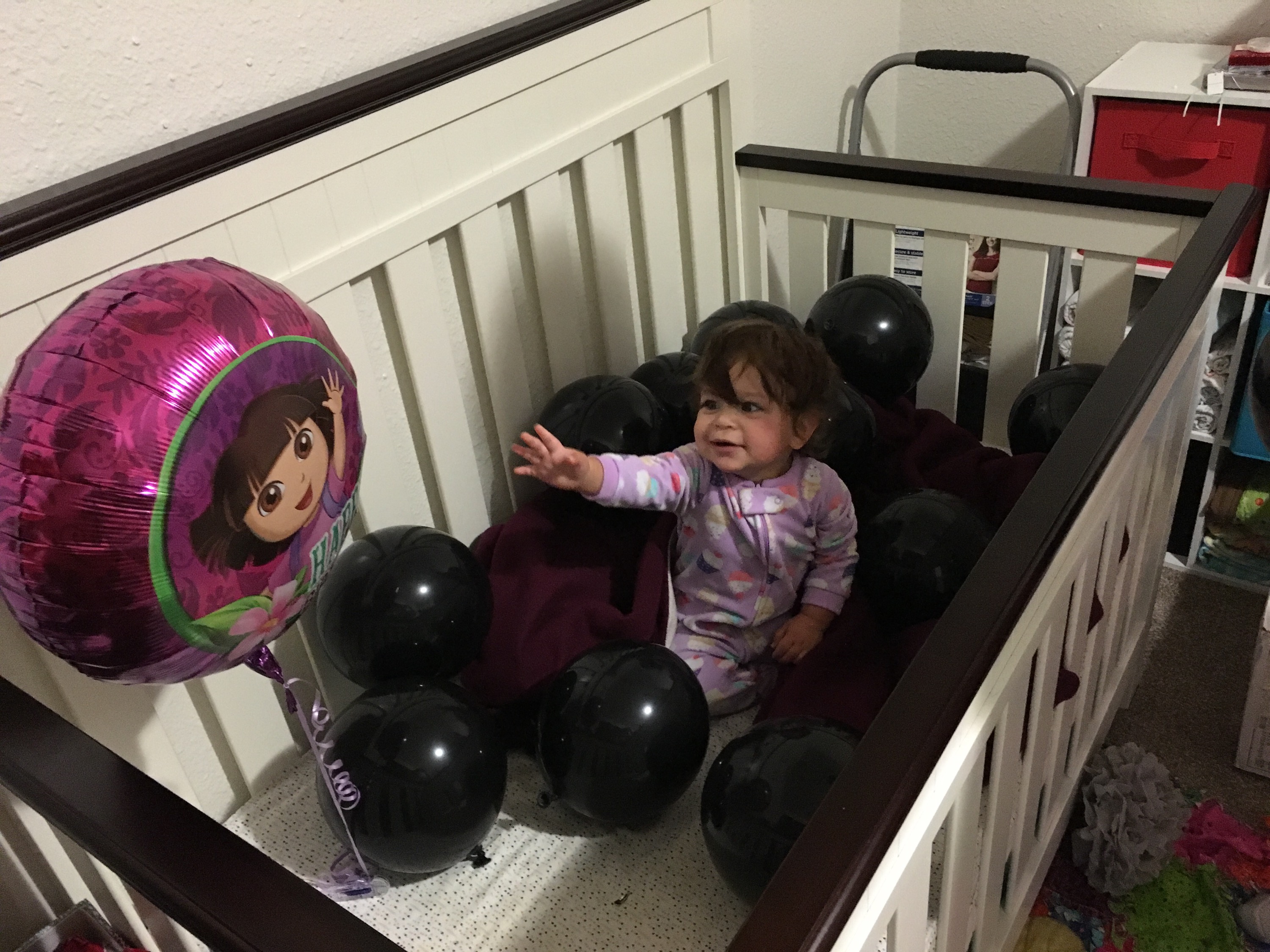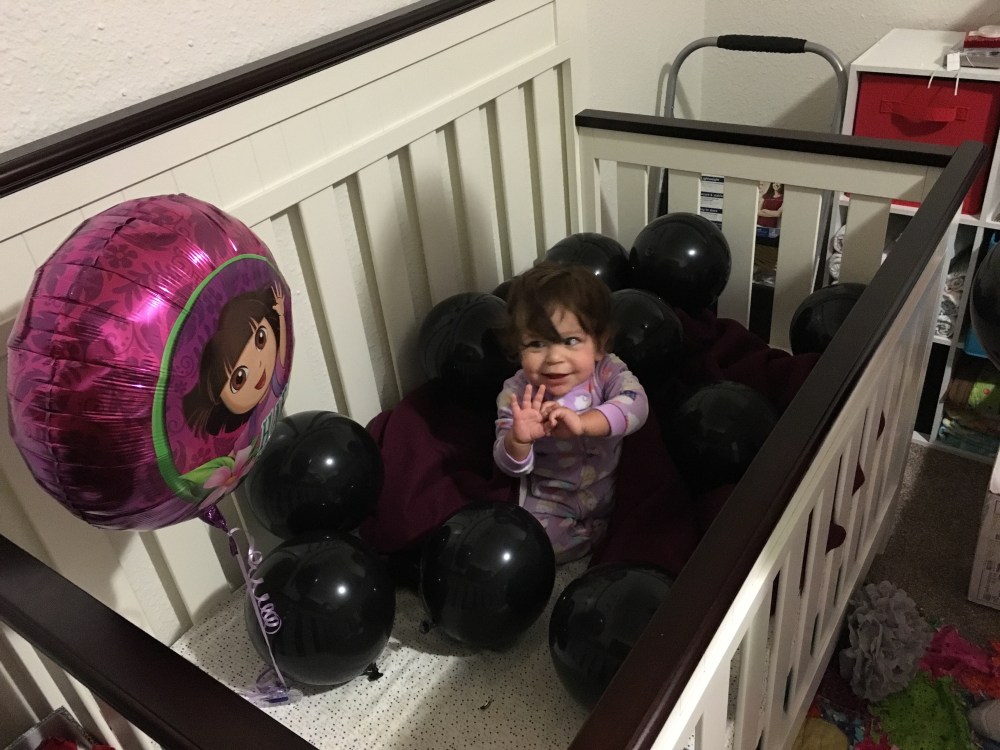 Leading up to her birthday D and I had many conversations about what exactly a 1st birthday should entail. There was talk about a party and inviting some of her (and my) friends. There was also discussion about just doing something really simple especially since she wont remember it. While we didn’t throw her a huge party we did do a couple things to make her day special. Also she loved everyone telling her happy birthday! To start her birthday out we blew up balloons and “filled” her crib up with them. We woke her up and it took her a while to realize what was going on but once she did she was really excited! The day went on like normal, nothing too special or out of the ordinary. We took her out for birthday dinner where she got Halibut and Salmon! She loved it!! I think it was the perfect balance for her birthday.