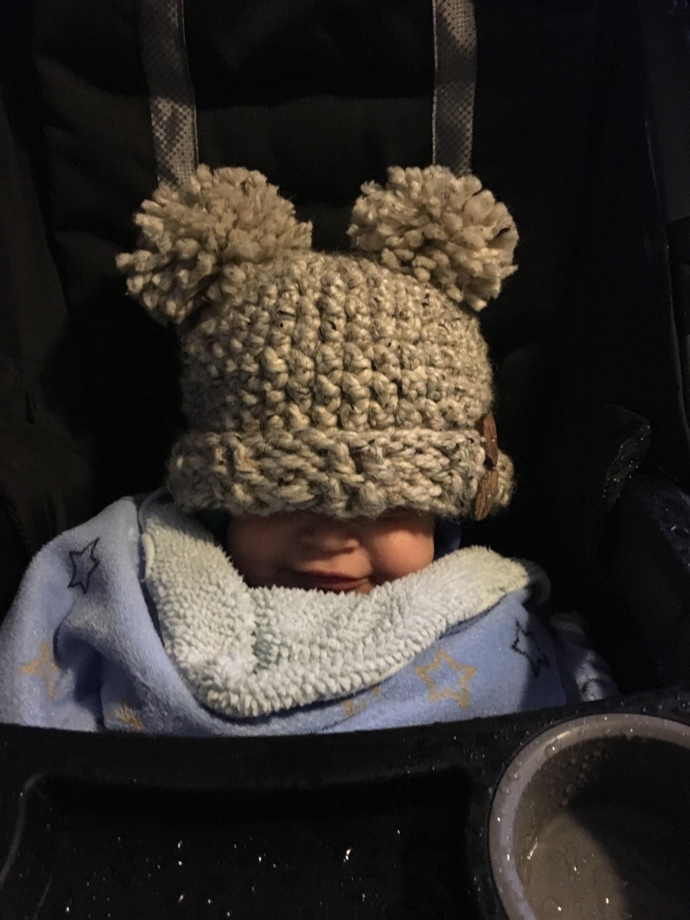 BB caught her first real cold! She had a terrible cough and you could tell she just wasn’t feeling herself. However, that didn’t stop her from begging to brave the cold to walk R with us. We made sure we snuggled her EXTRA and I had to get proof that we were being careful not to make her sicker.