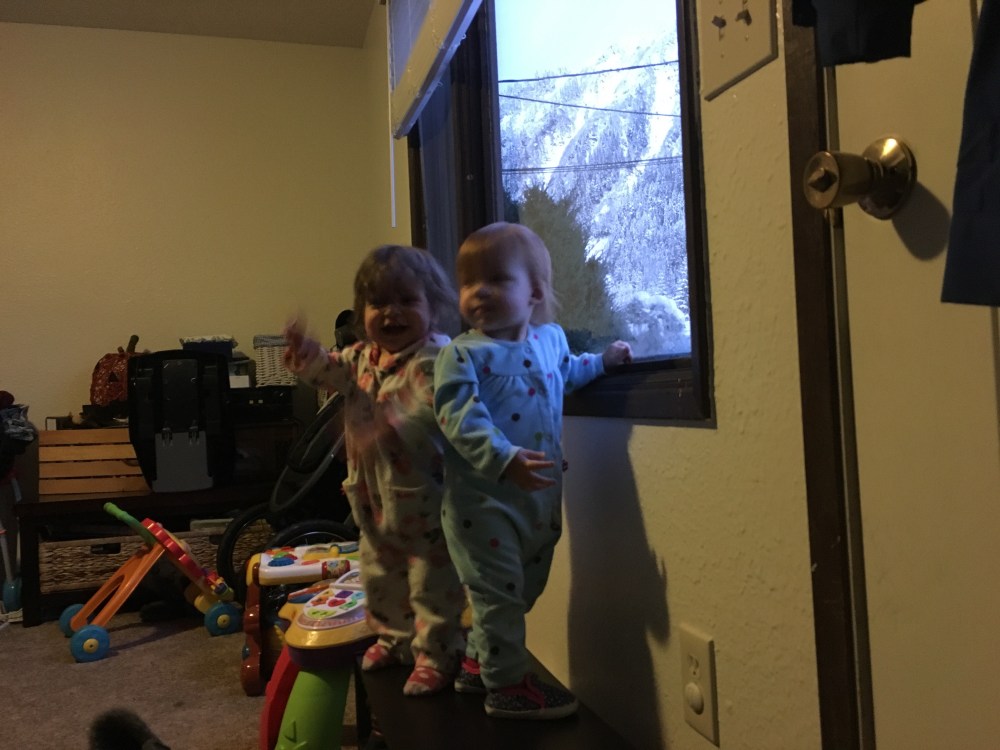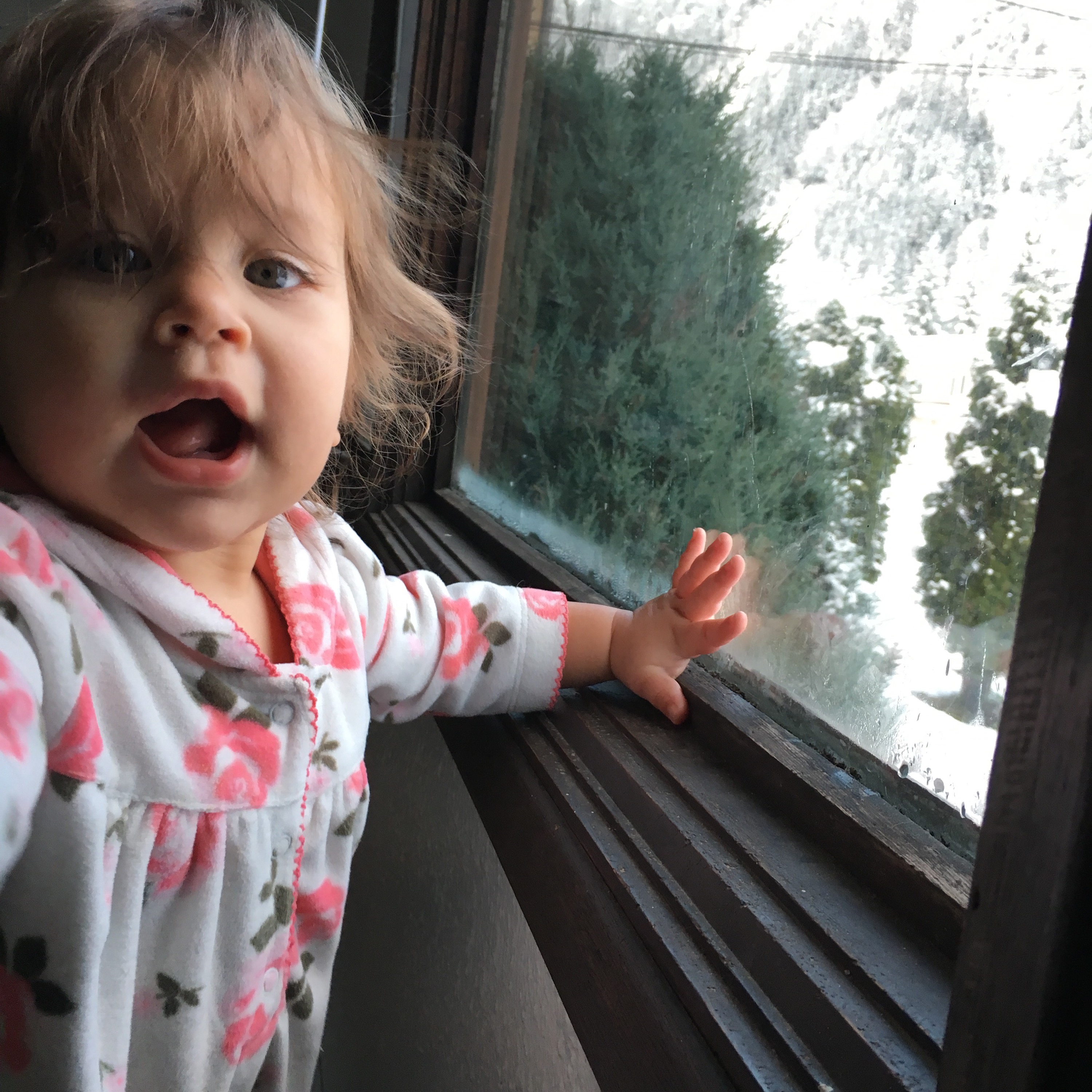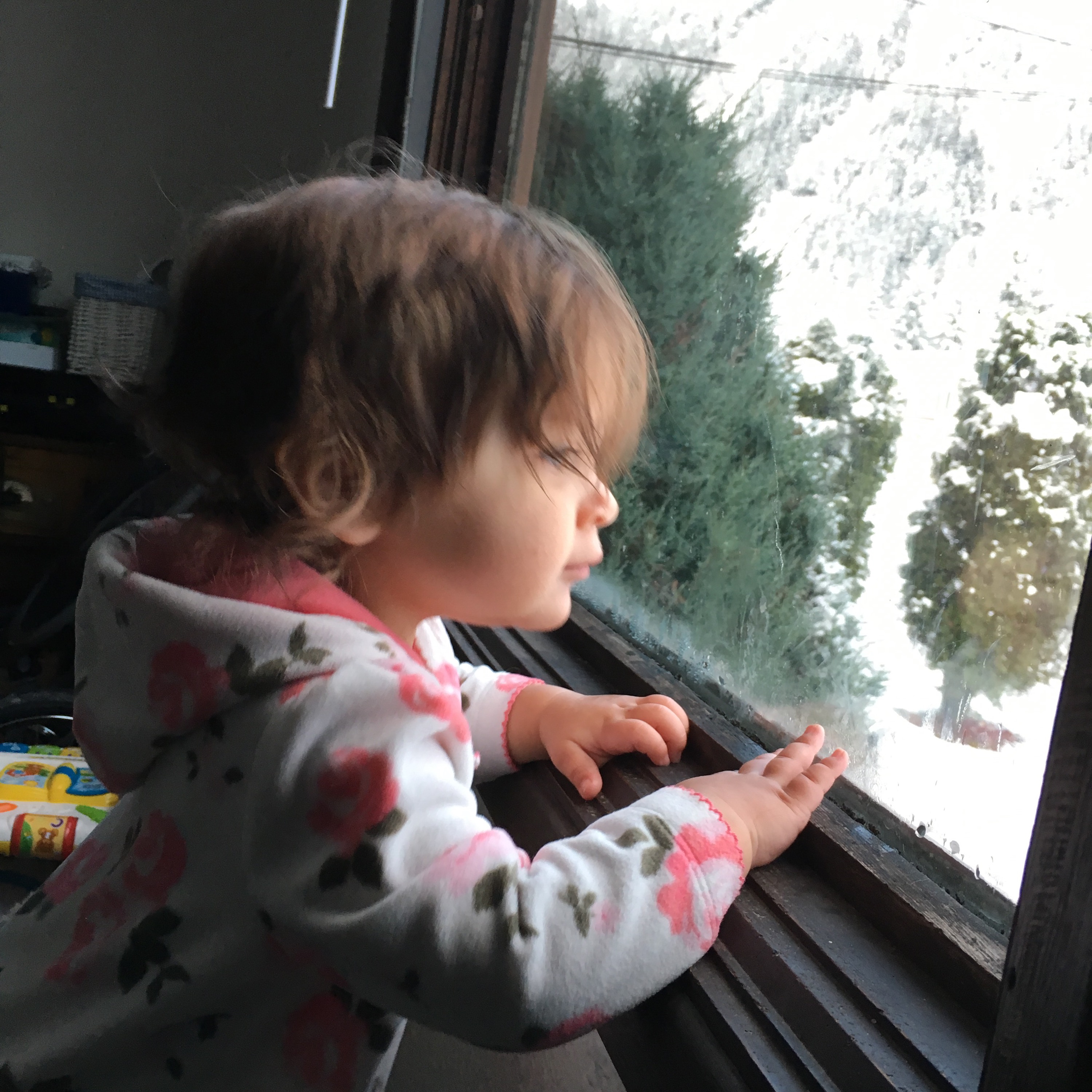 BB found a new trick… she stands on our shoe holder and looks out the window for anyone! She is super cute when D get’s home and will wave and jump up and down. I won’t lie this is a blessing in disguise… it helps her feel like she is getting out without braving the cold. It just so happened to be super snowy the day she discovered this.