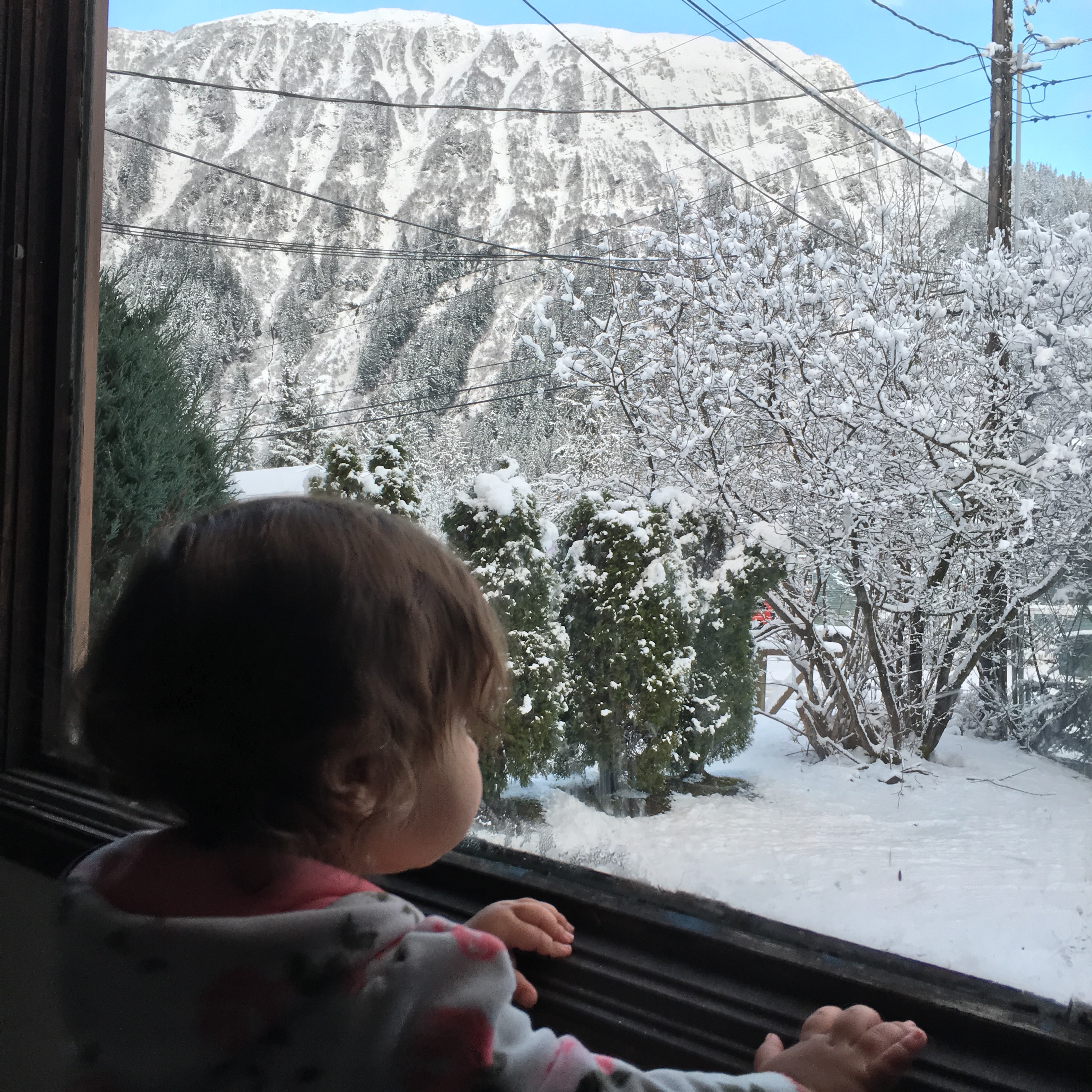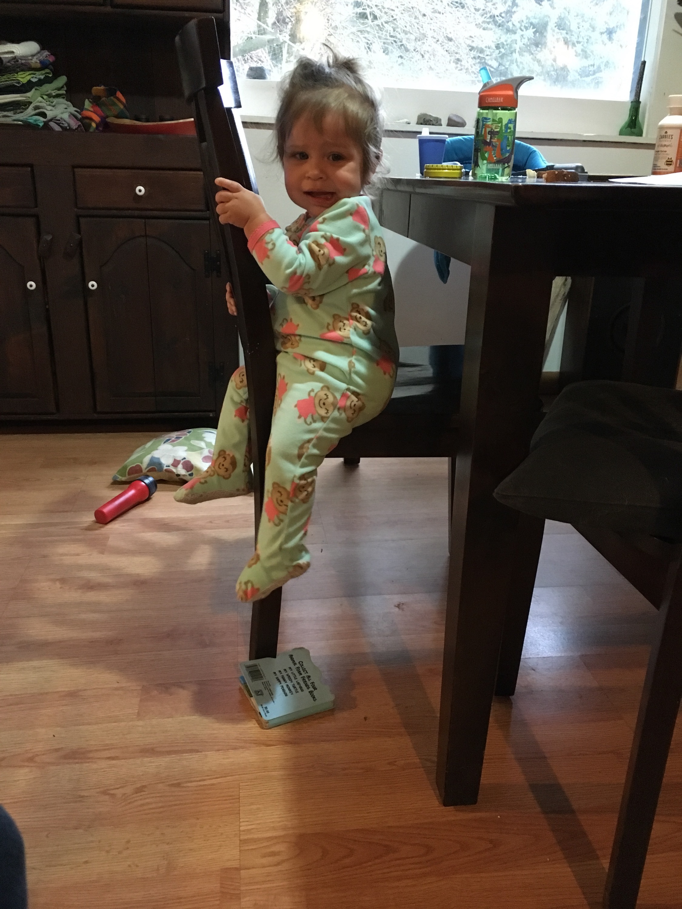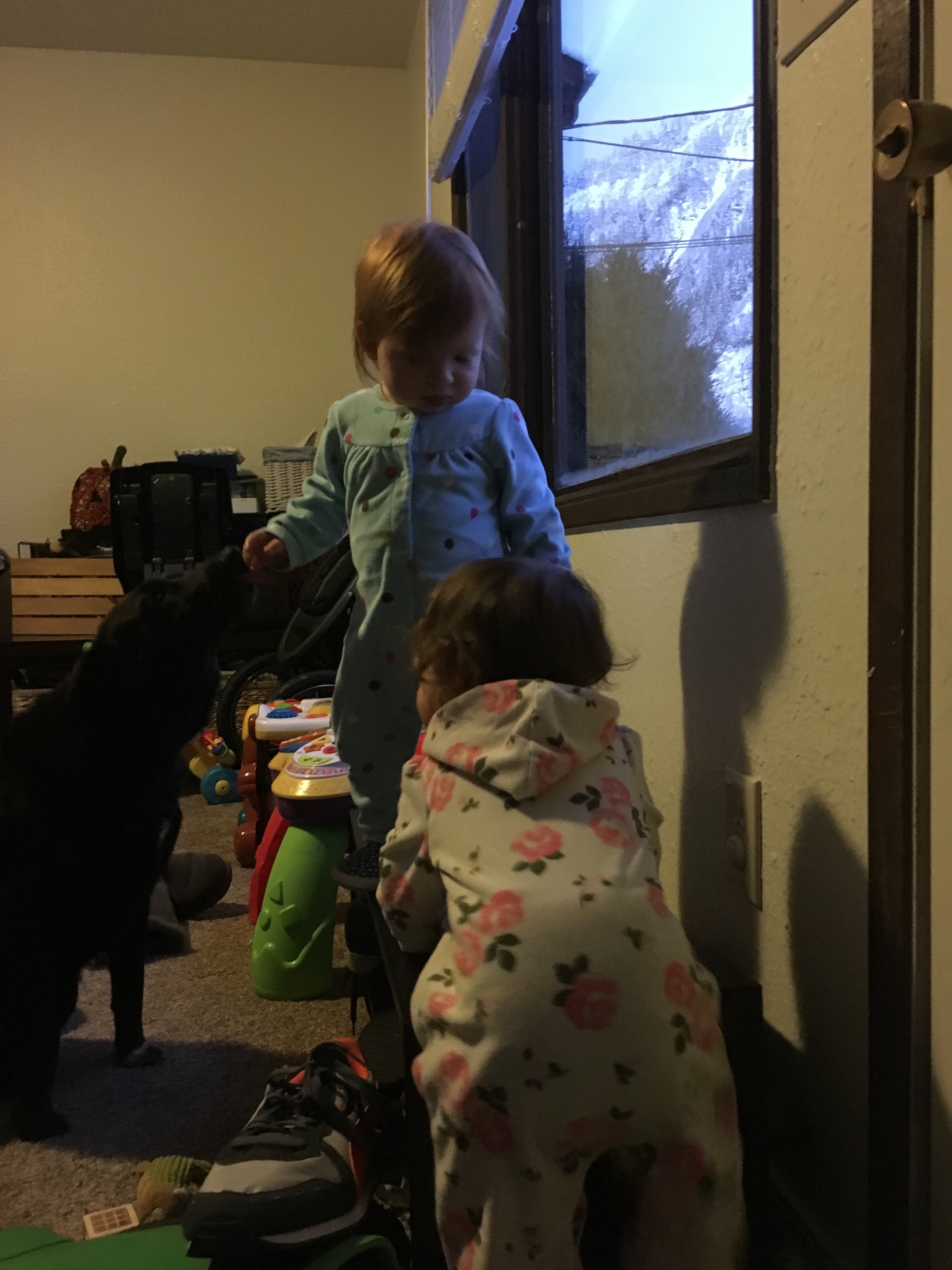 BB found a new trick… she stands on our shoe holder and looks out the window for anyone! She is super cute when D get’s home and will wave and jump up and down. I won’t lie this is a blessing in disguise… it helps her feel like she is getting out without braving the cold. It just so happened to be super snowy the day she discovered this.