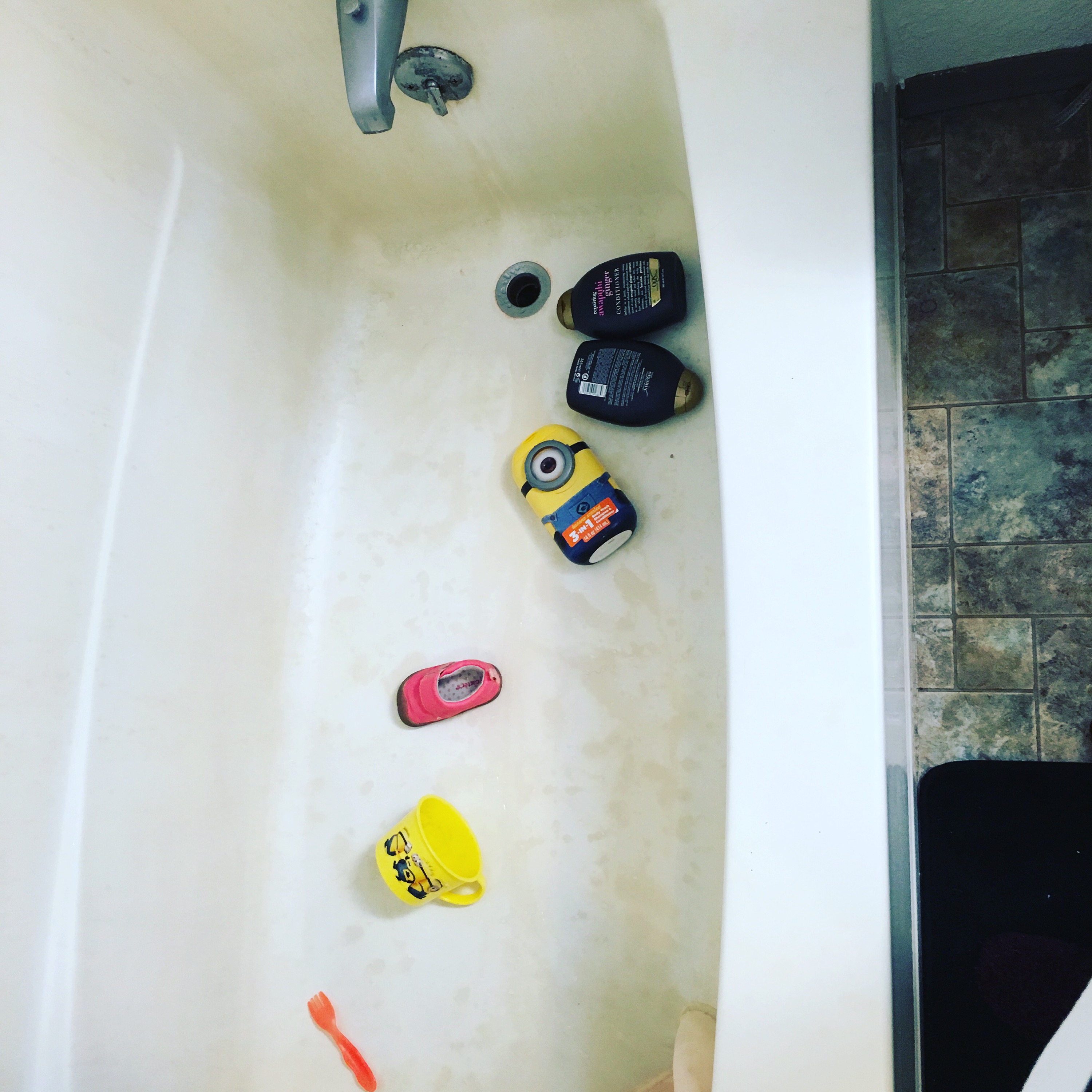 BB’s surprises for D every morning is random things in the tub. I am pretty sure we currently have a couple balloons a container of magnets possibly some shampoo bottles and a stuffed animal.