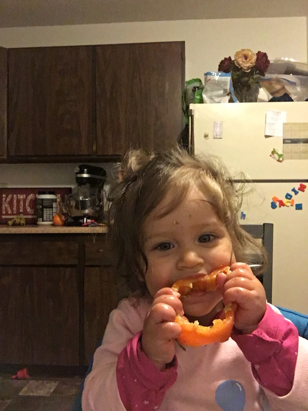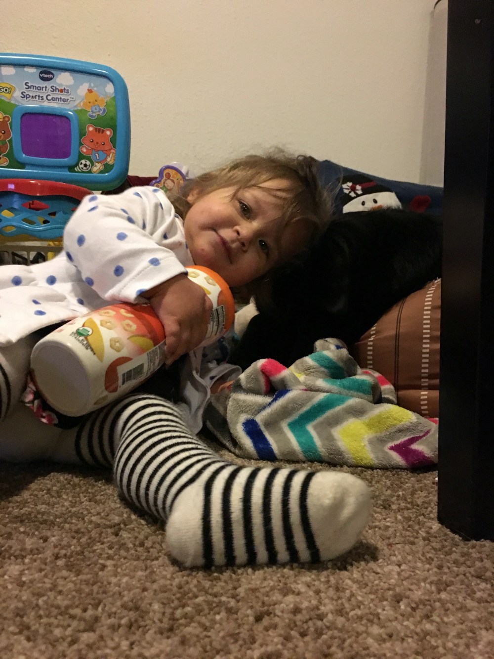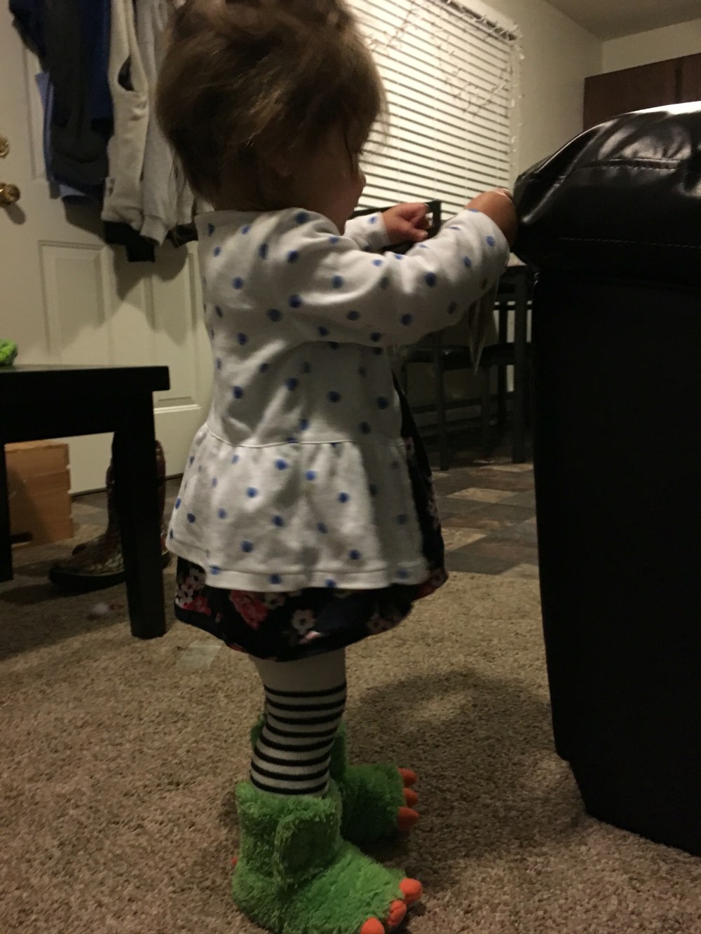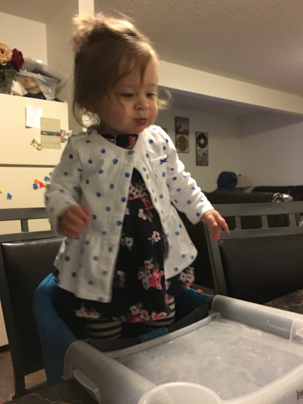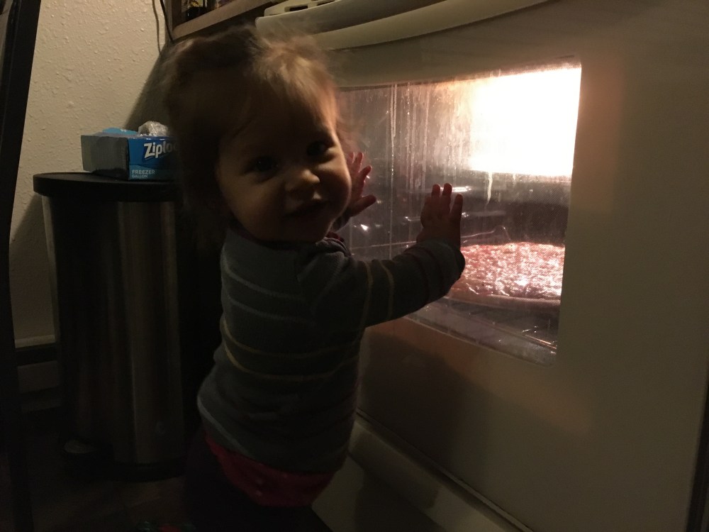 She’s a rebel! We’ve been making sure that she is learning that we have to stay safe in these situations but some how, she still manages to stand up in her high chair once a week or so.