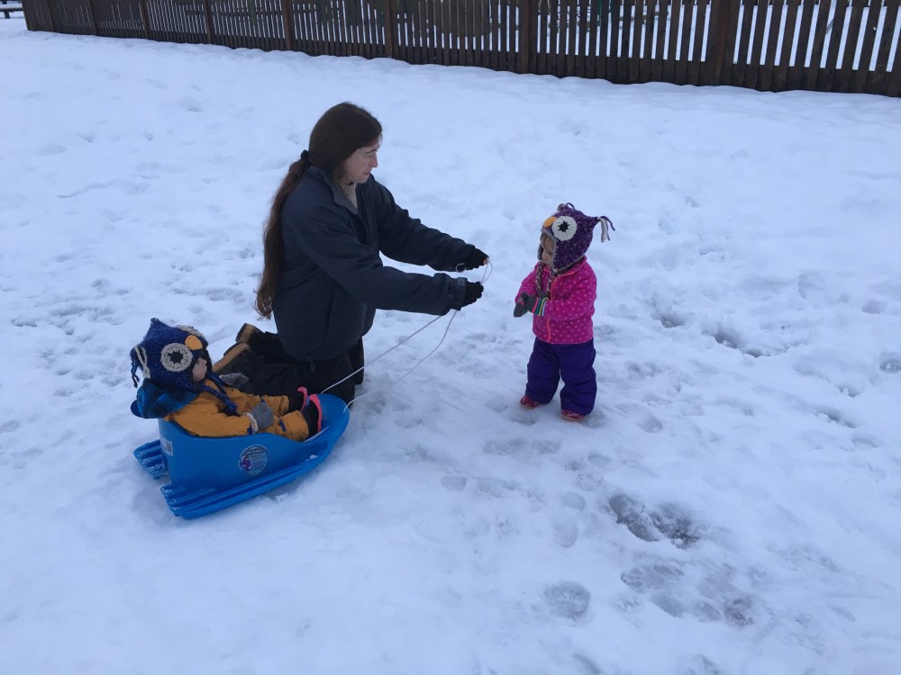 BB is a wild Child!! She LOVES to sled. She lets out little yelps of glee every time she goes down. She is also fearless. No matter if she takes a spill she gets right back on and goes down again! This little girl has abs of steel as well. We were looking into purchasing a baby sled that has a little back on it (like the one in the picture below [that is actually the exact sled we were trying to buy and ironically our friend snagged it before us]) but BB does just fine in a normal sled. She doesn’t fall backward and stays sitting the whole ride. She is really cute and holds on tight to the sides and lets out her squeal of glee.