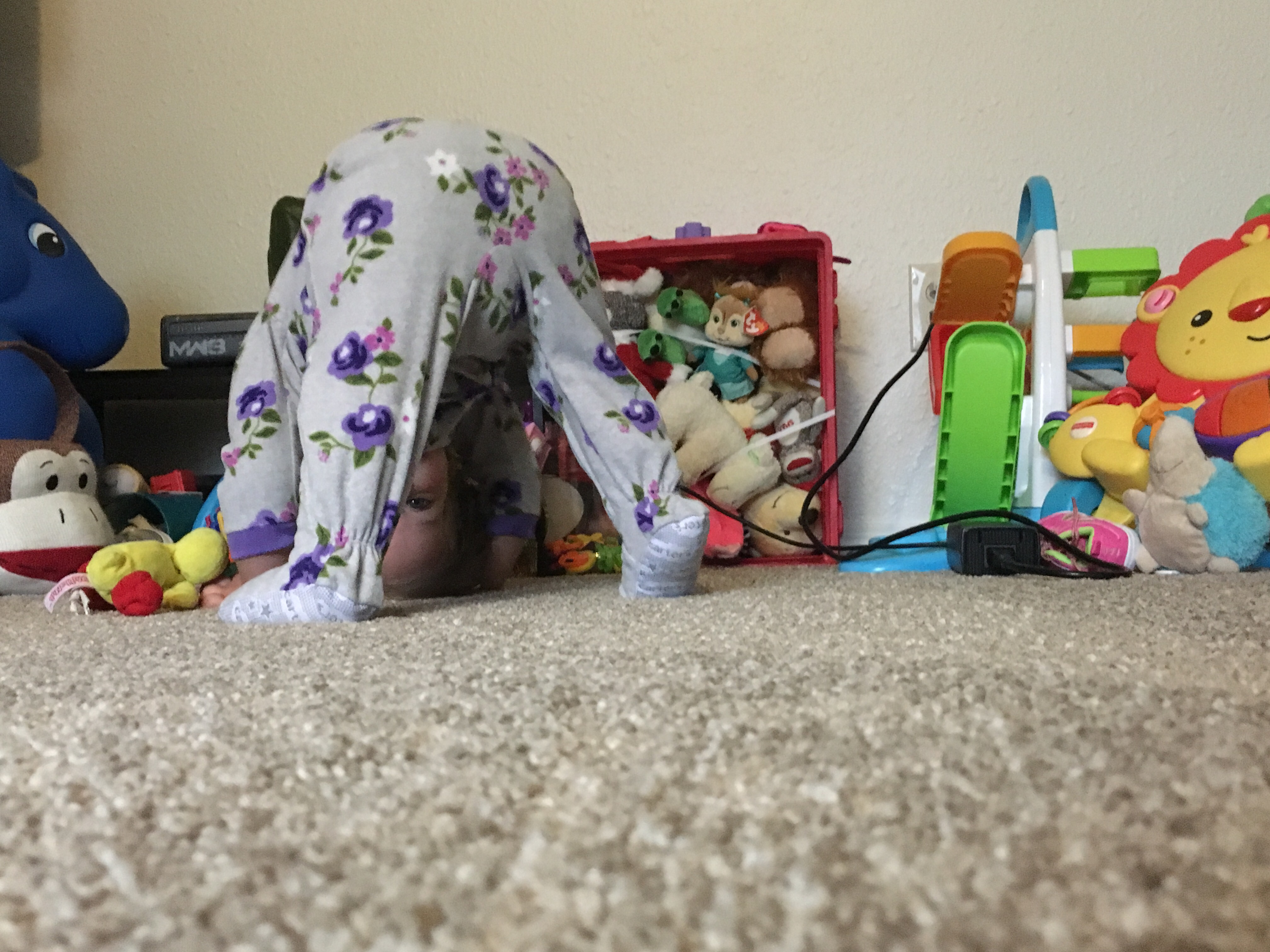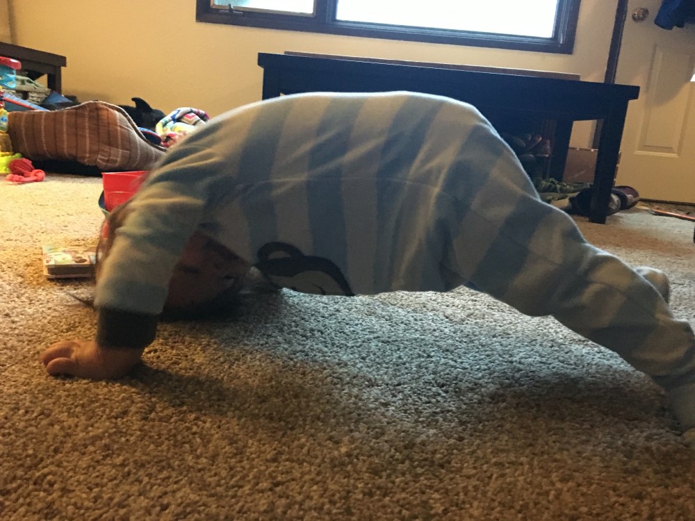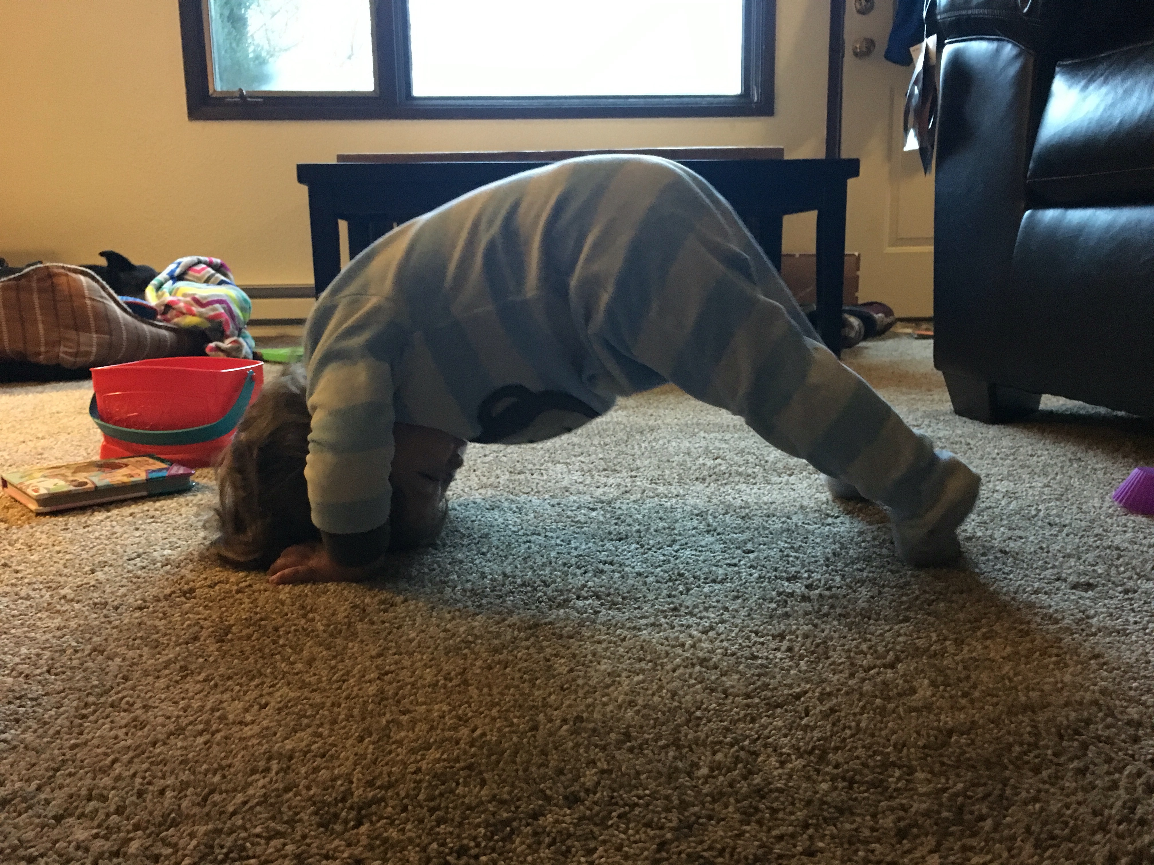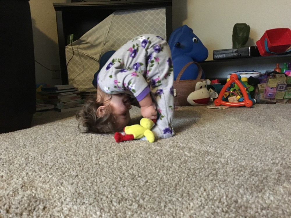 I think BB spies on us at night, after we put her to bed. Out of nowhere she started to do Yoga, so we rolled with it. Now she really enjoys it and we do lots of stretches.