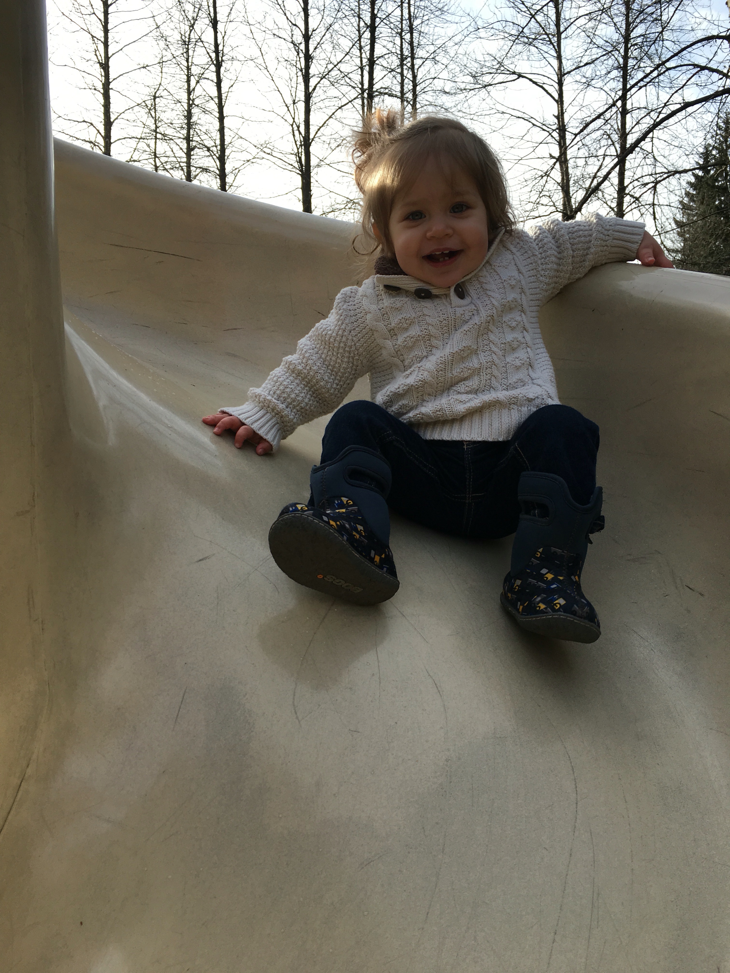 We got some sunshine and so we made sure to go and play. This kid thinks she is a big kid. Forget baby slides she likes the big ones!
