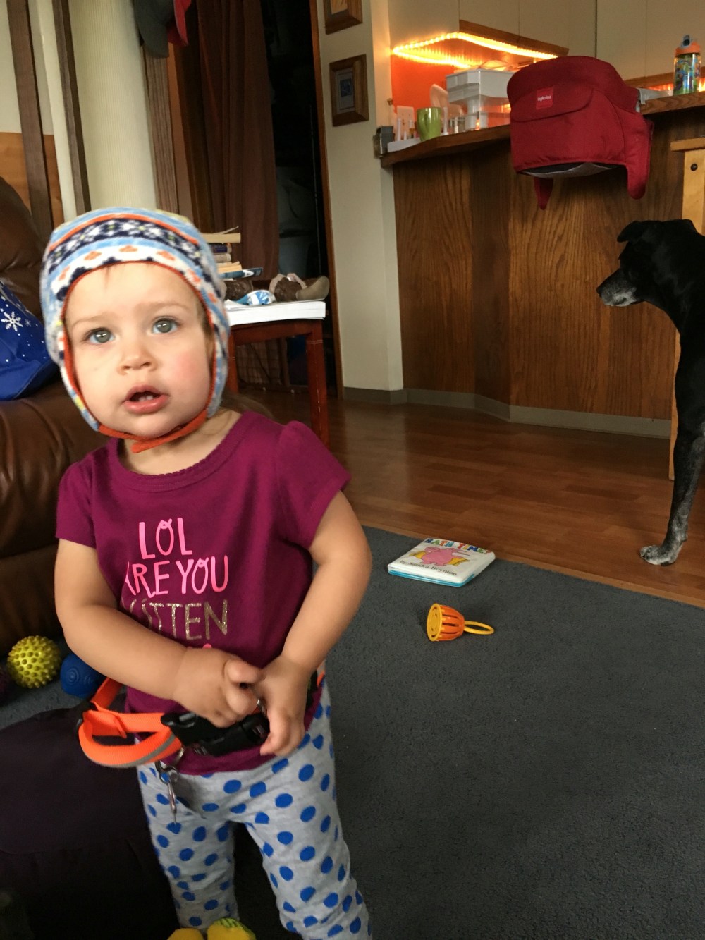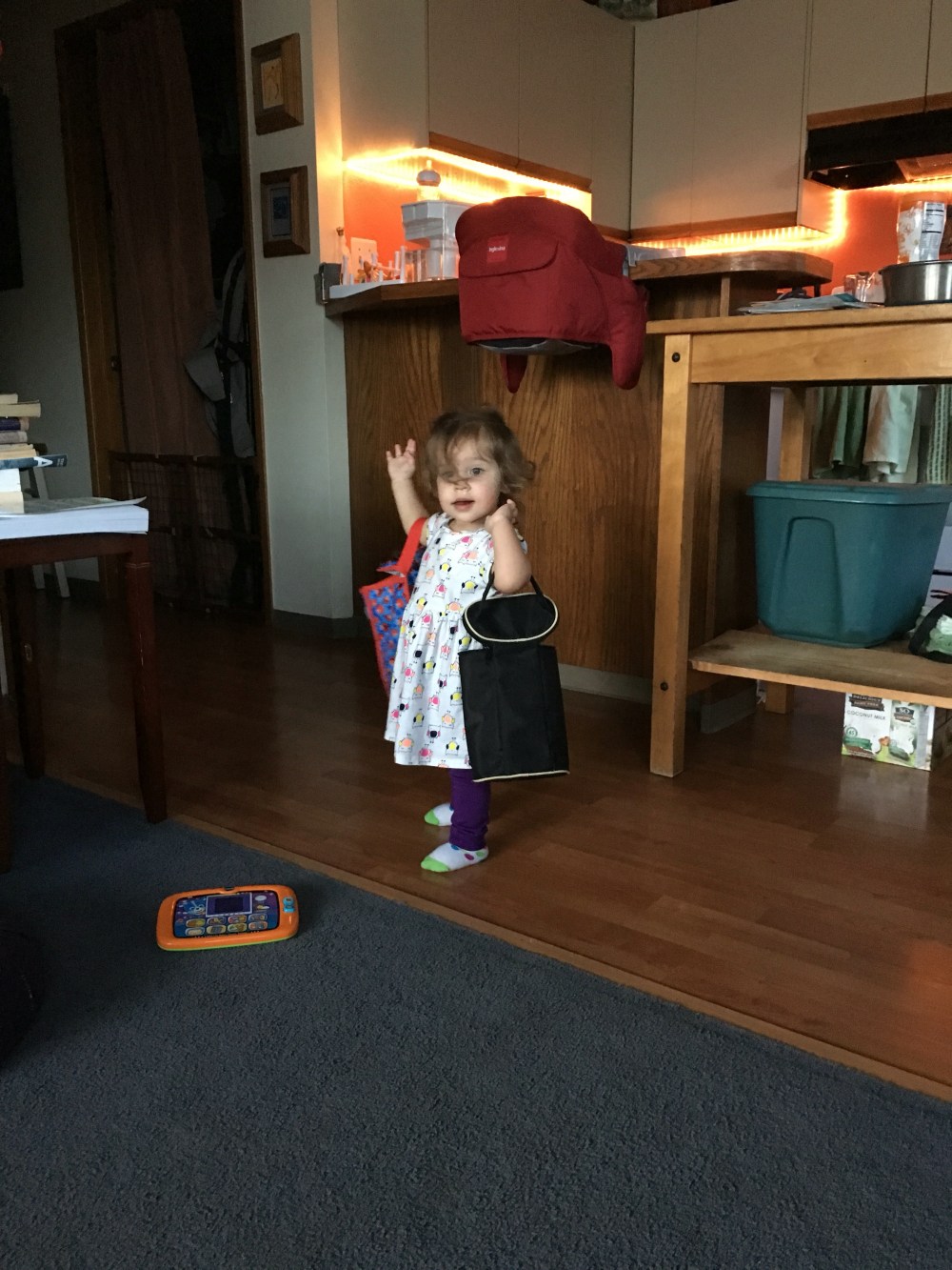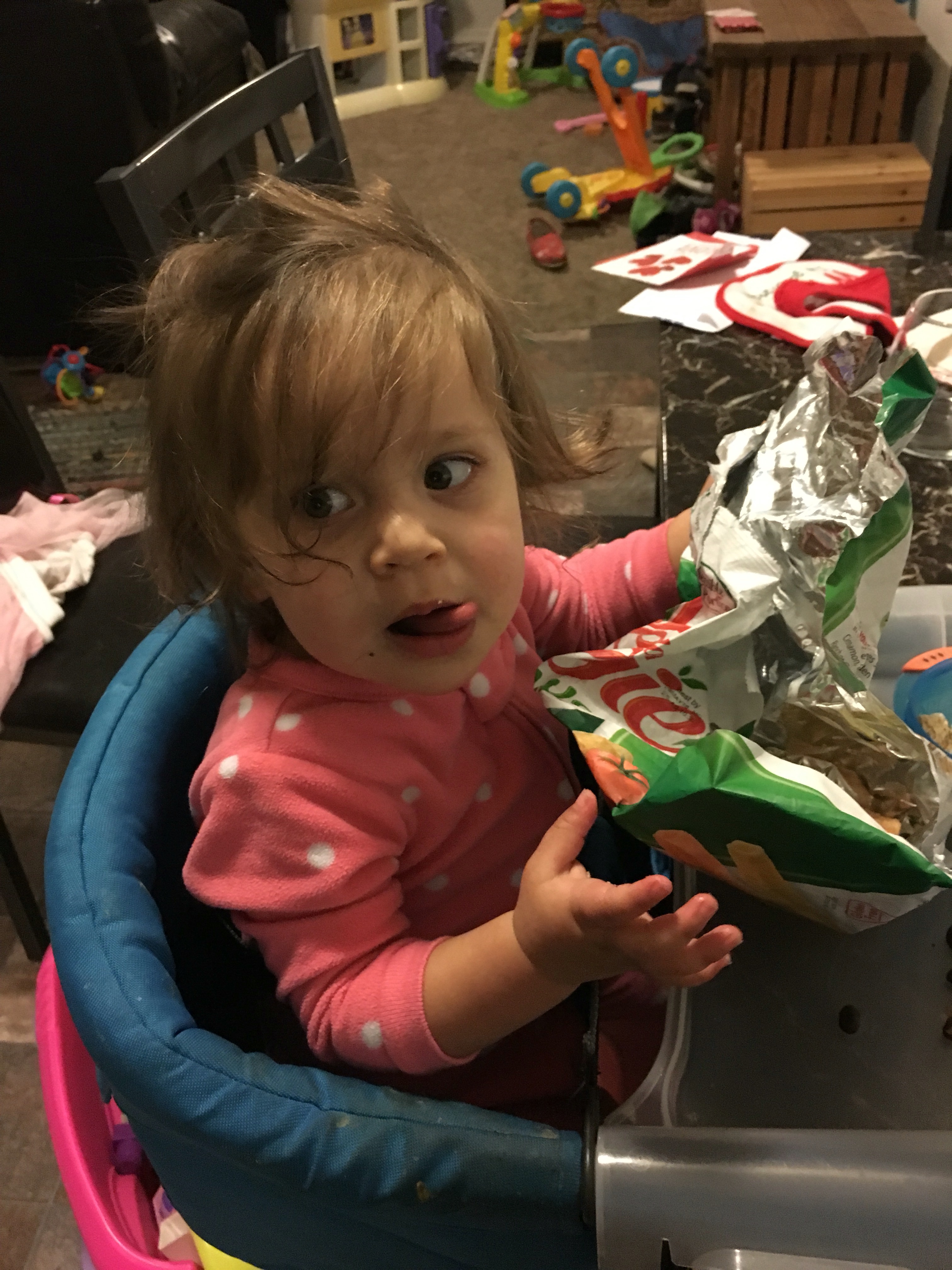 Some days are less amazing than others. There are days when everyone just needs a little extra cuddles. Those days are good too, just a little harder on mom because holding a baby and doing things like cooking and cleaning are a little challenging!  BB is quick! I was making dinner and she grabbed the bag of chips (veggie straws) and was munching away. I figured that she could splurge a little since she already ate most of her dinner.