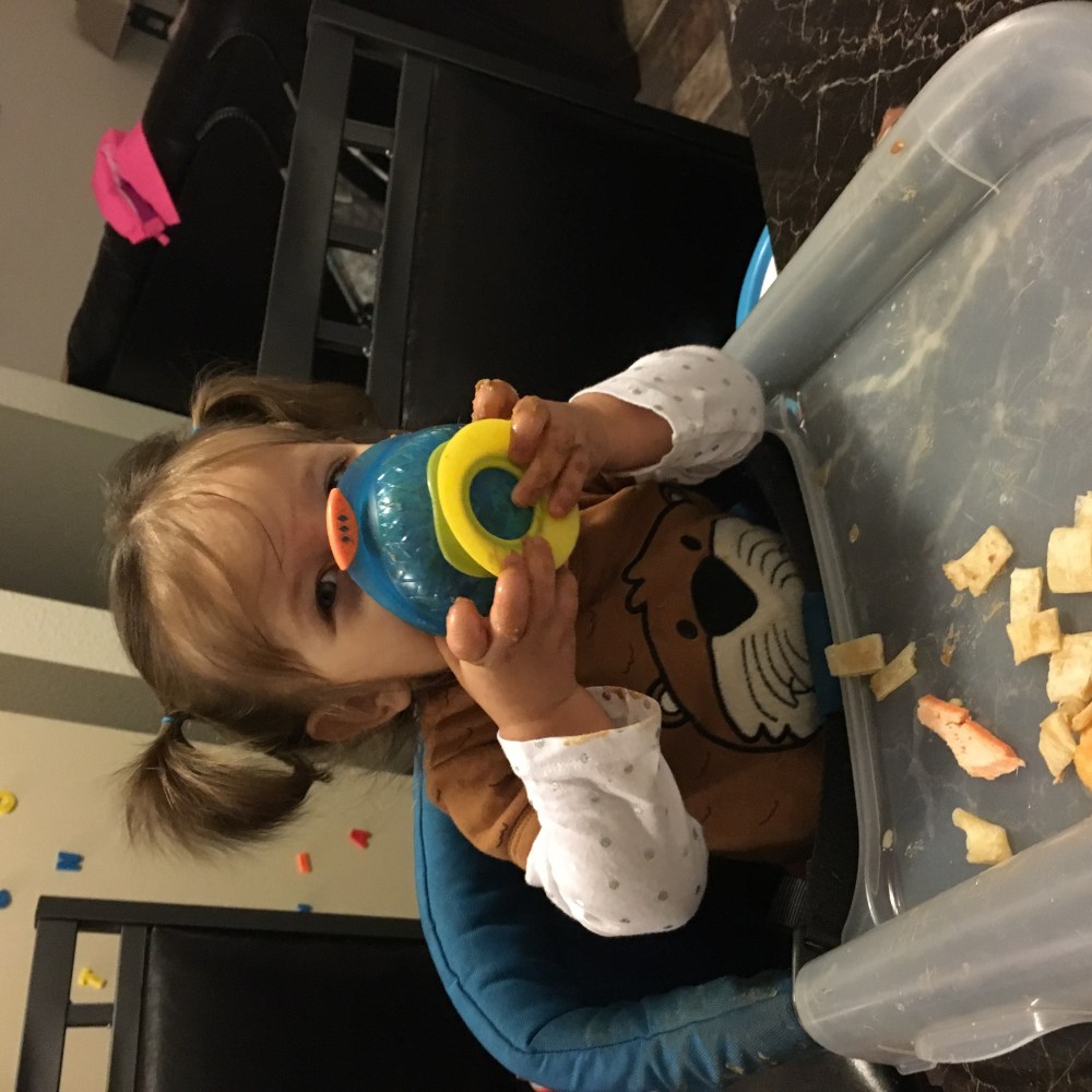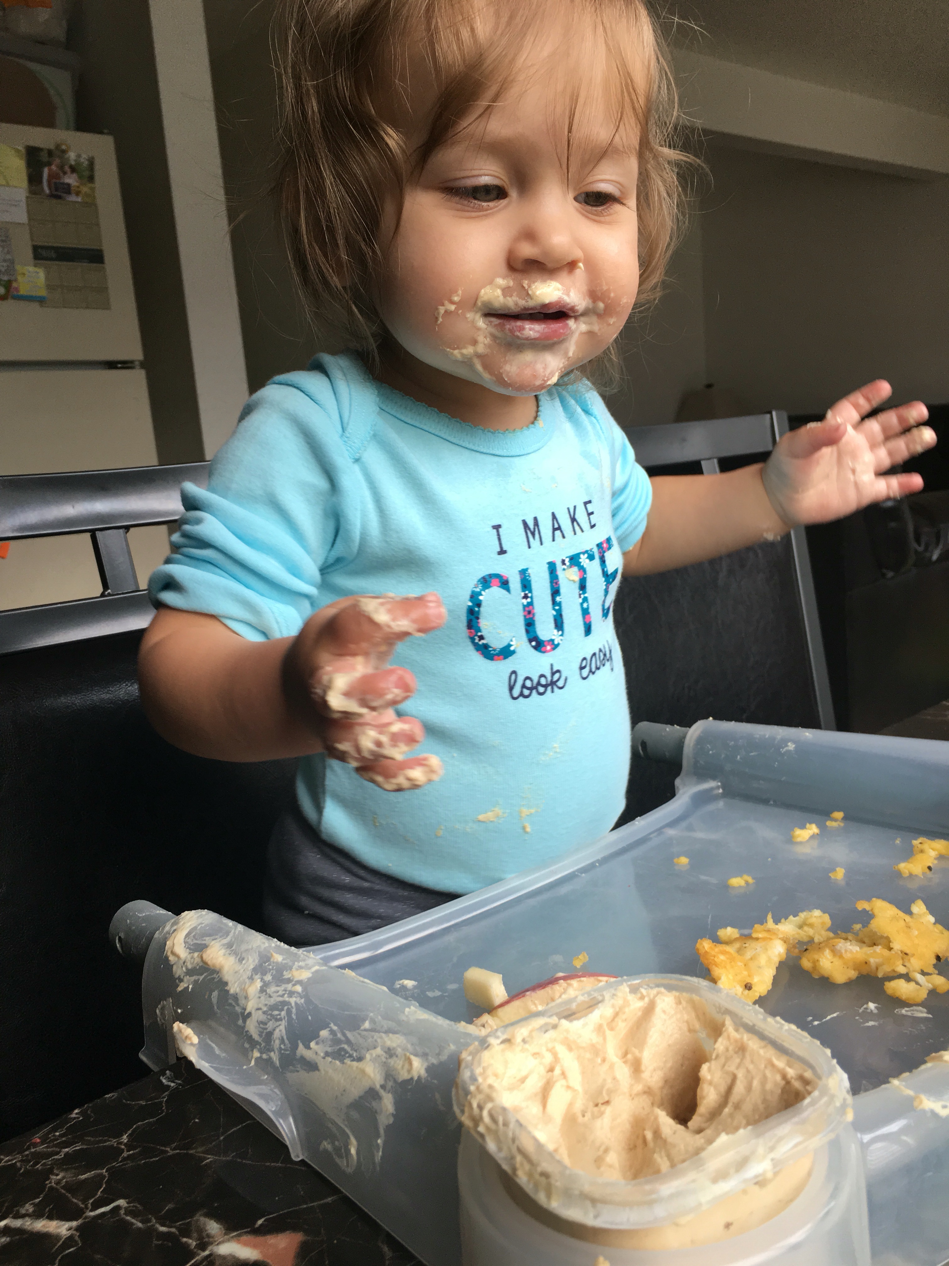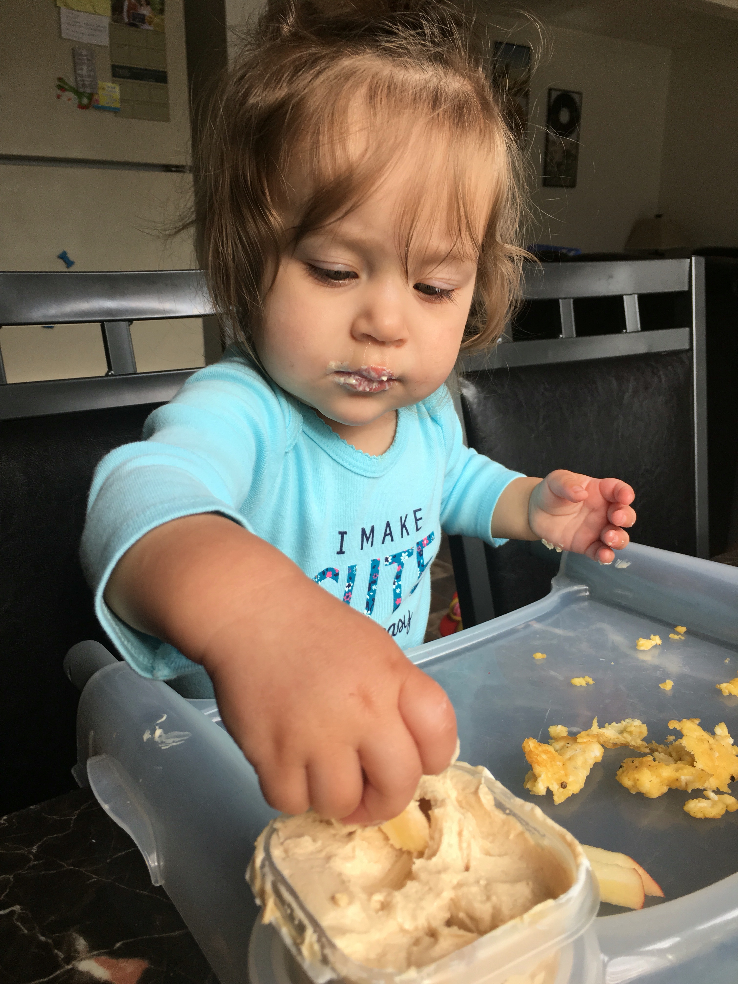 We learned recently that this kid LOVES dip! She will dip anything she can (we learned this when she went to dip her cantaloupe into beans…)!
