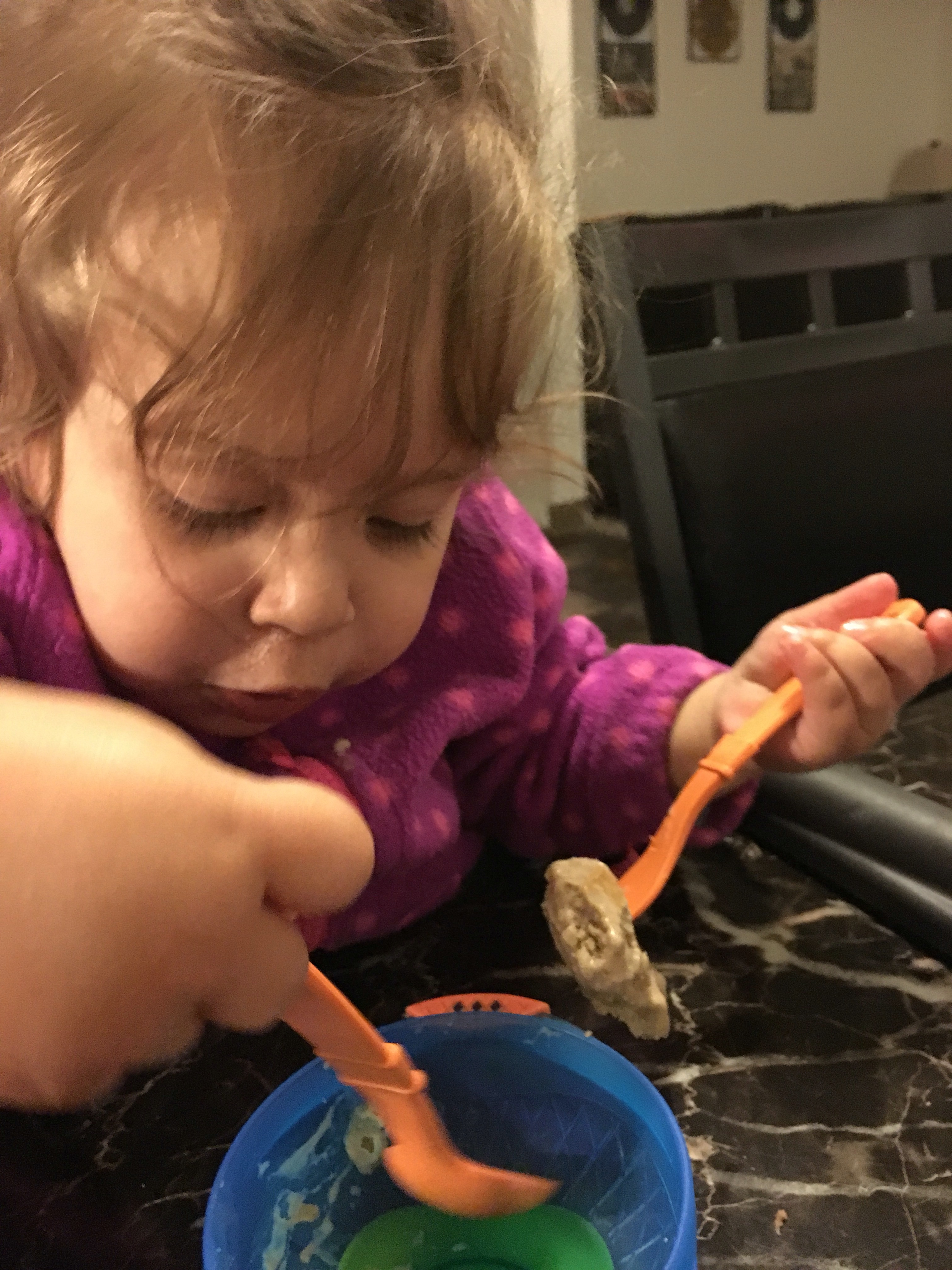 We made her Banana ice cream and she loves it! I feel bad but it has been my bribe if I need anything to get done… “Hey bean, if you clean up all your blocks you can have banana swirl after dinner! … Do you want banana swirl? Can you eat three more bites?”