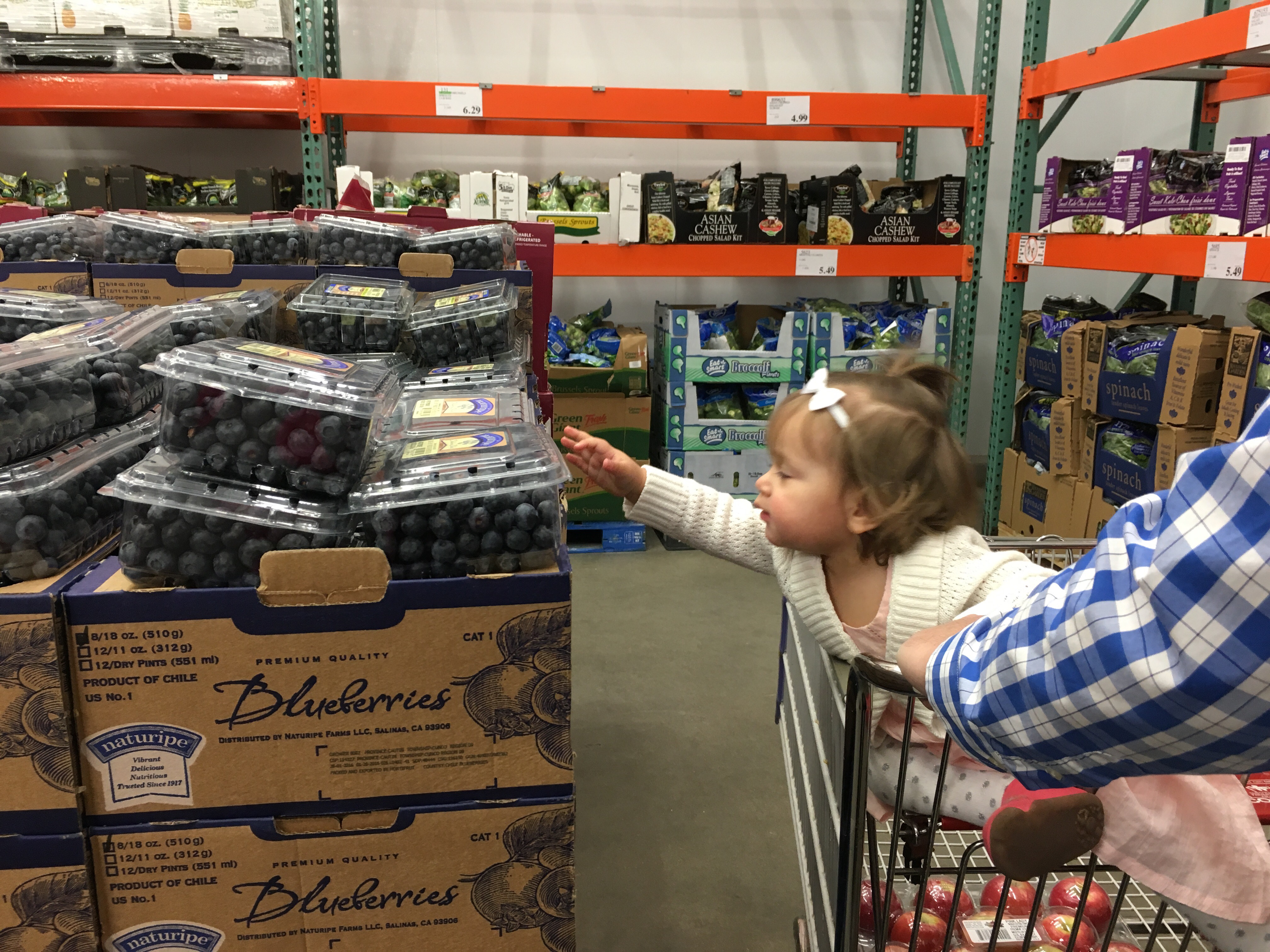 Shopping after church and she basically jumped out of the cart to get some blueberries! She loves berries!!!