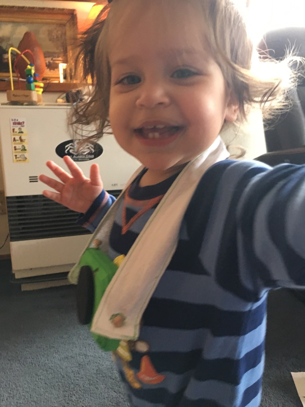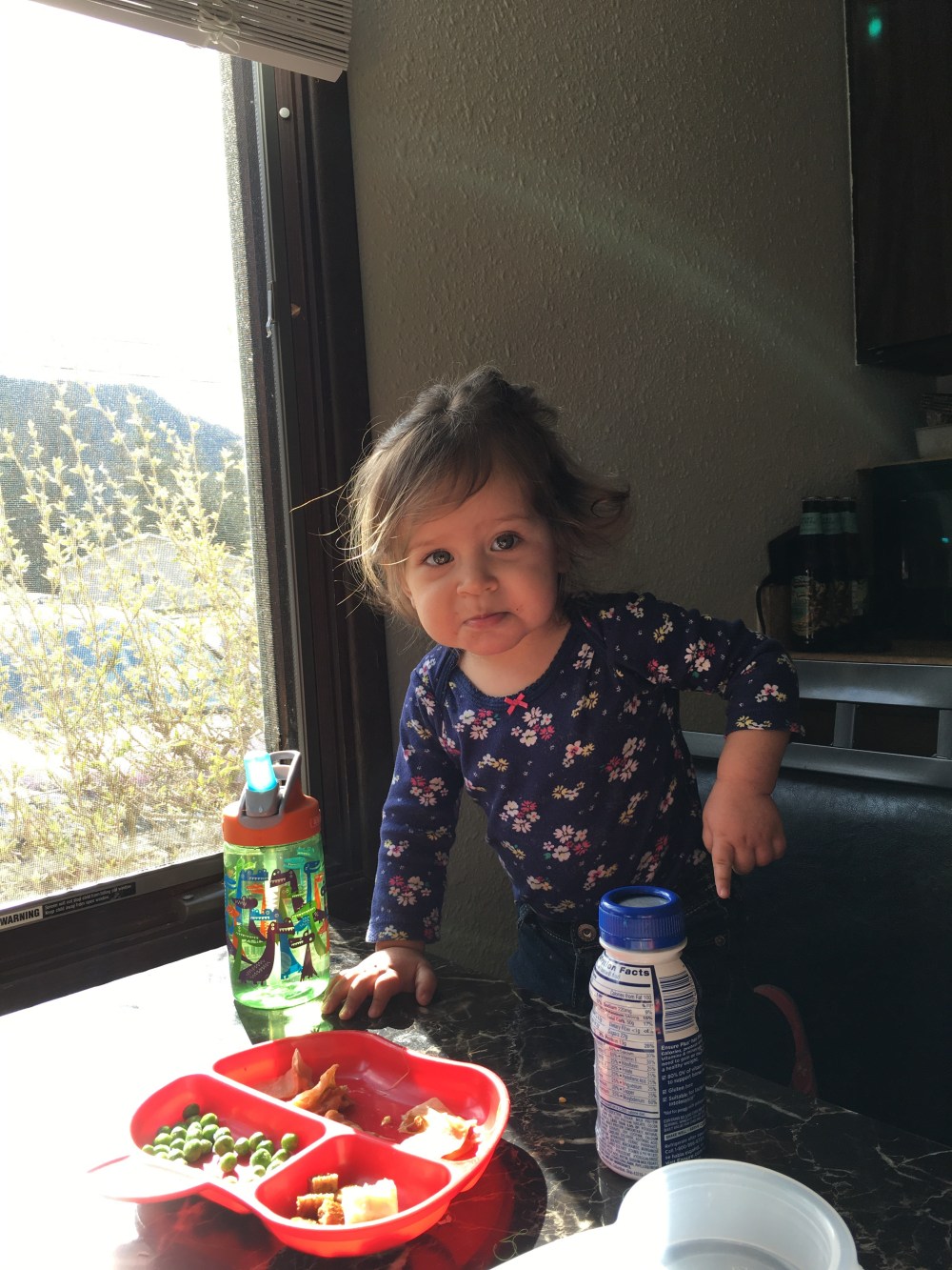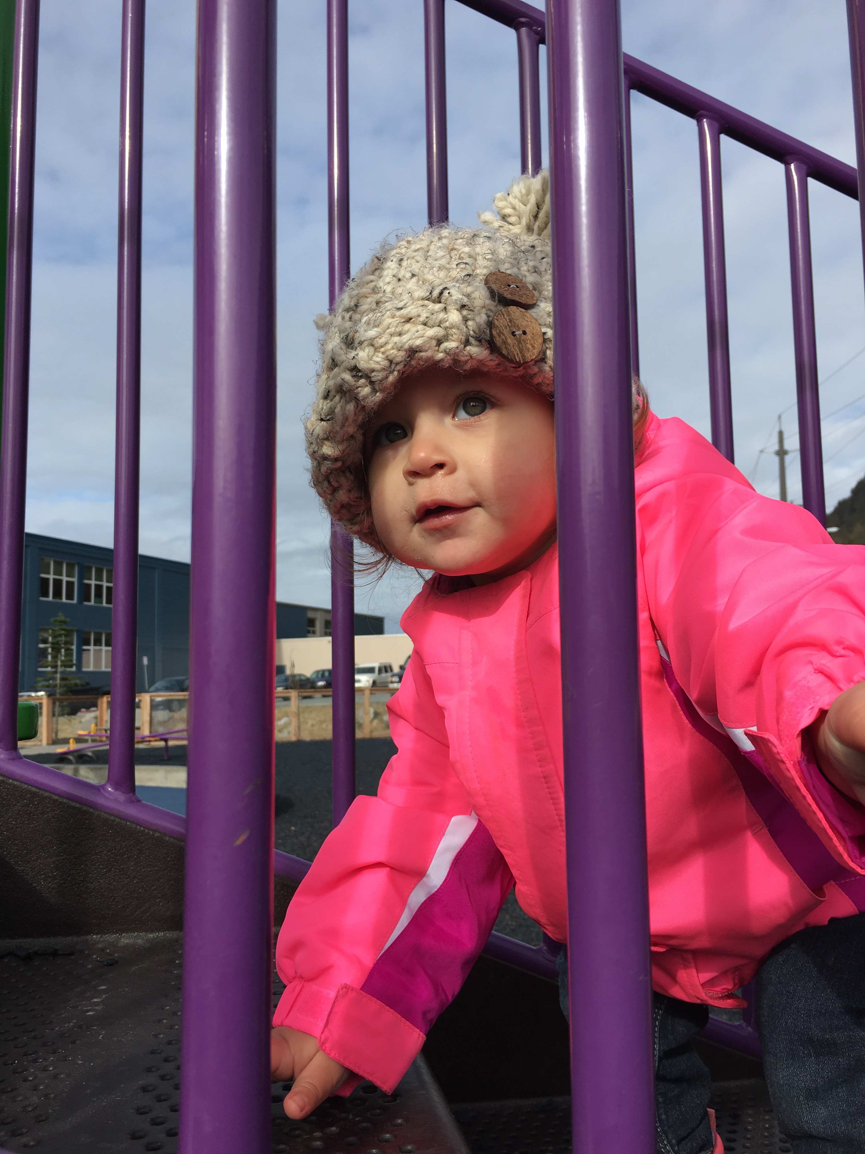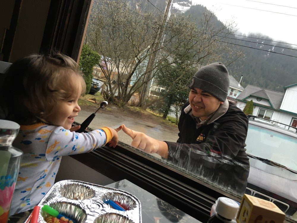 BB loves to sit at the window and wait for “dada” to come home. Every car she sees she asks “dada?”. When he gets home she points at him jumps up and down and smiles ear to ear! Also just a side note it is still light out when he gets home now!!! The daylight is coming back!