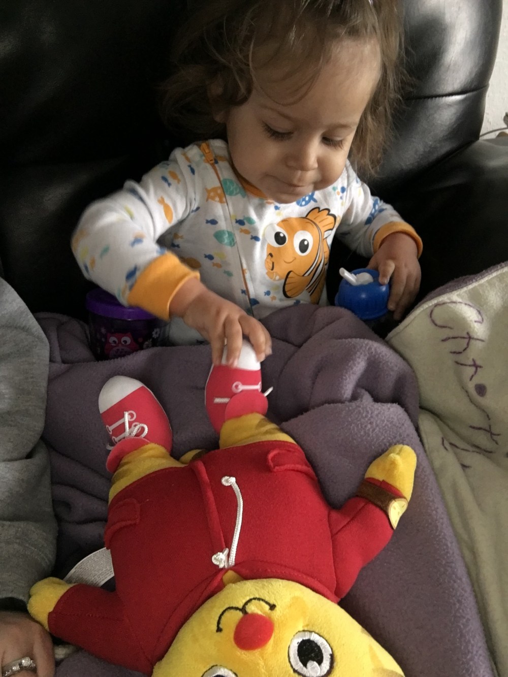 D got BB a Daniel Tiger toy for Easter but since she was feeling so yucky we couldn’t stand to wait to give it to her. She loves it and spent a lot of time cuddling with him!
