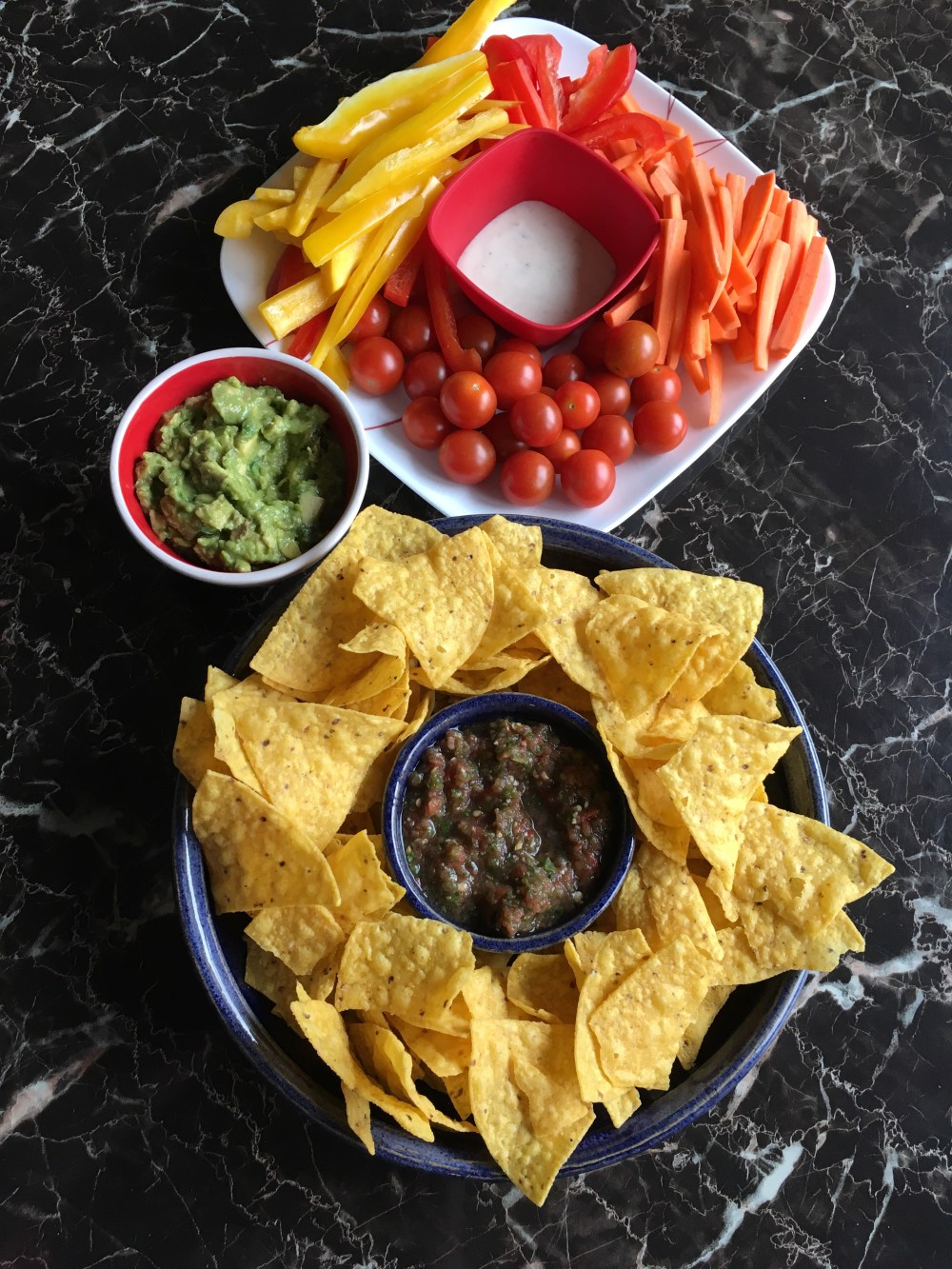 When the time came D helped me out so much in the kitchen. Which made it his redemption dinner. You see, D has always used this one instance when I kicked him out of the kitchen while we made pizza (way back when we were just barely dating) as the excuse for why he doesn’t help in the kitchen. Well, this time he made the salsa, guac, arranged the veggie platter, and helped me do some other little things. It turned out great, especially all the parts he had a hand in.