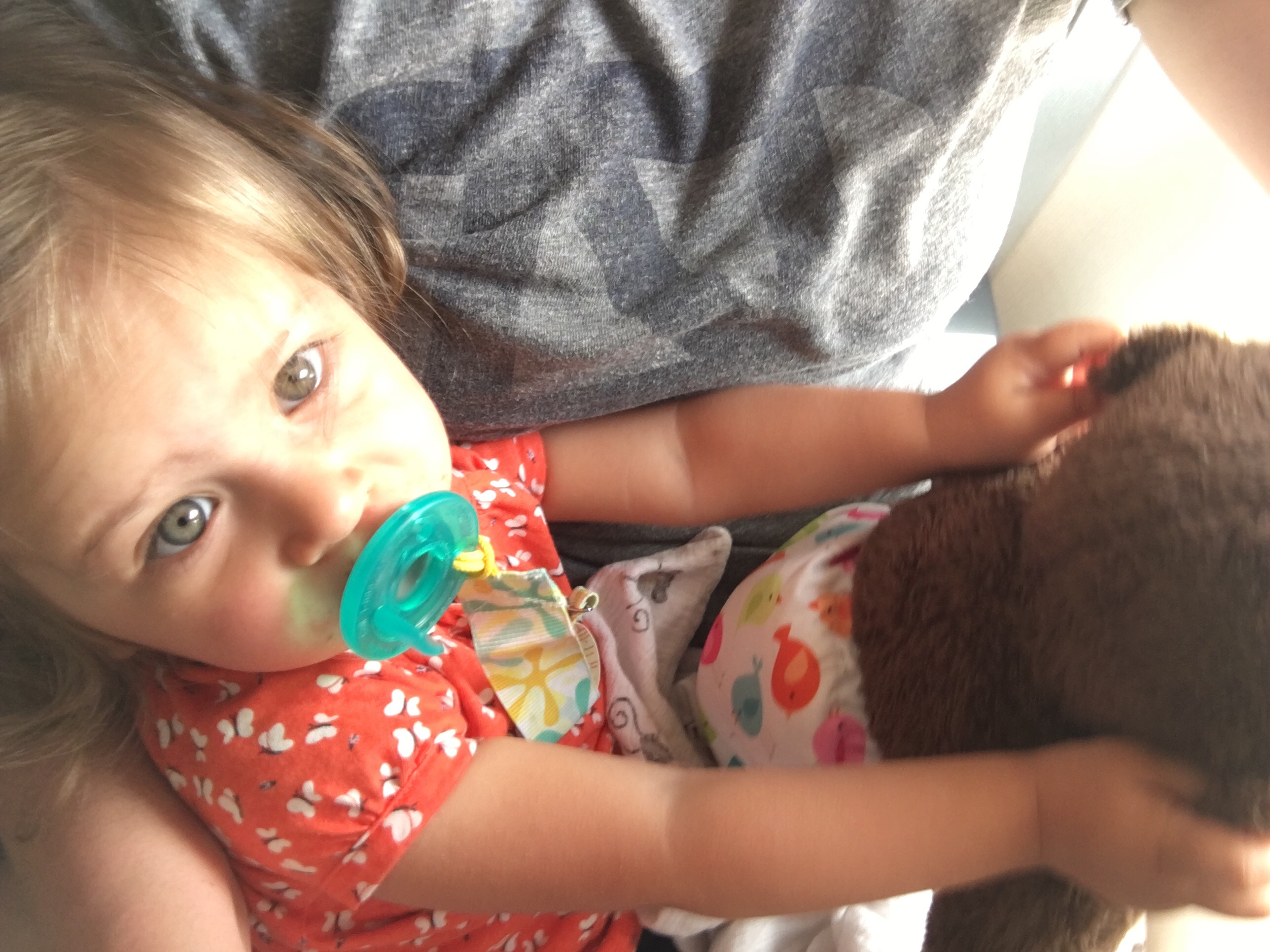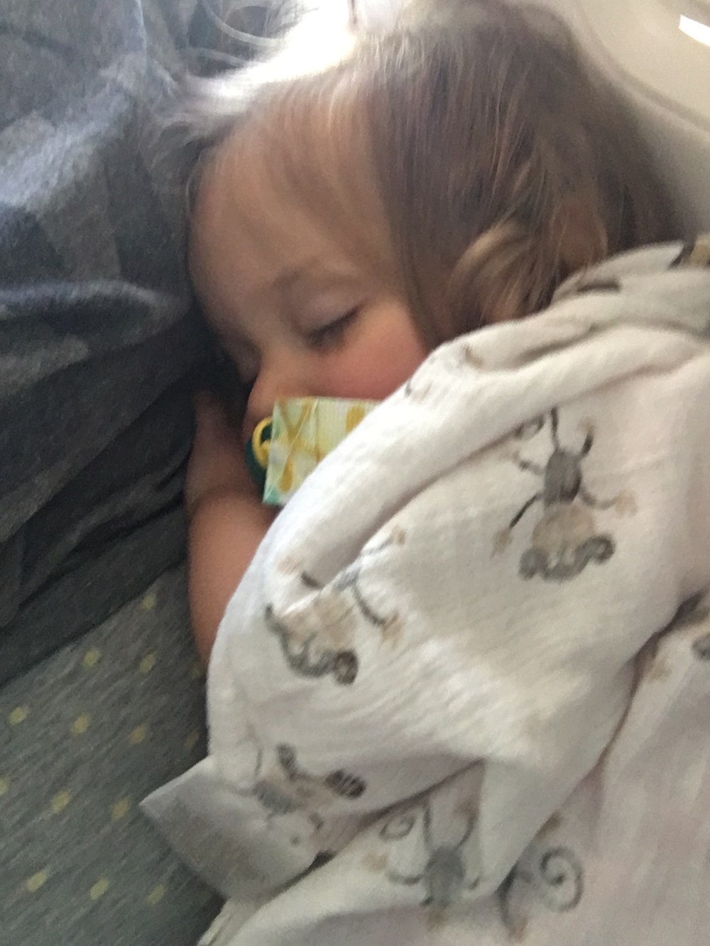 So sweet when she sleeps cuddling me. It only happens on airplanes anymore.