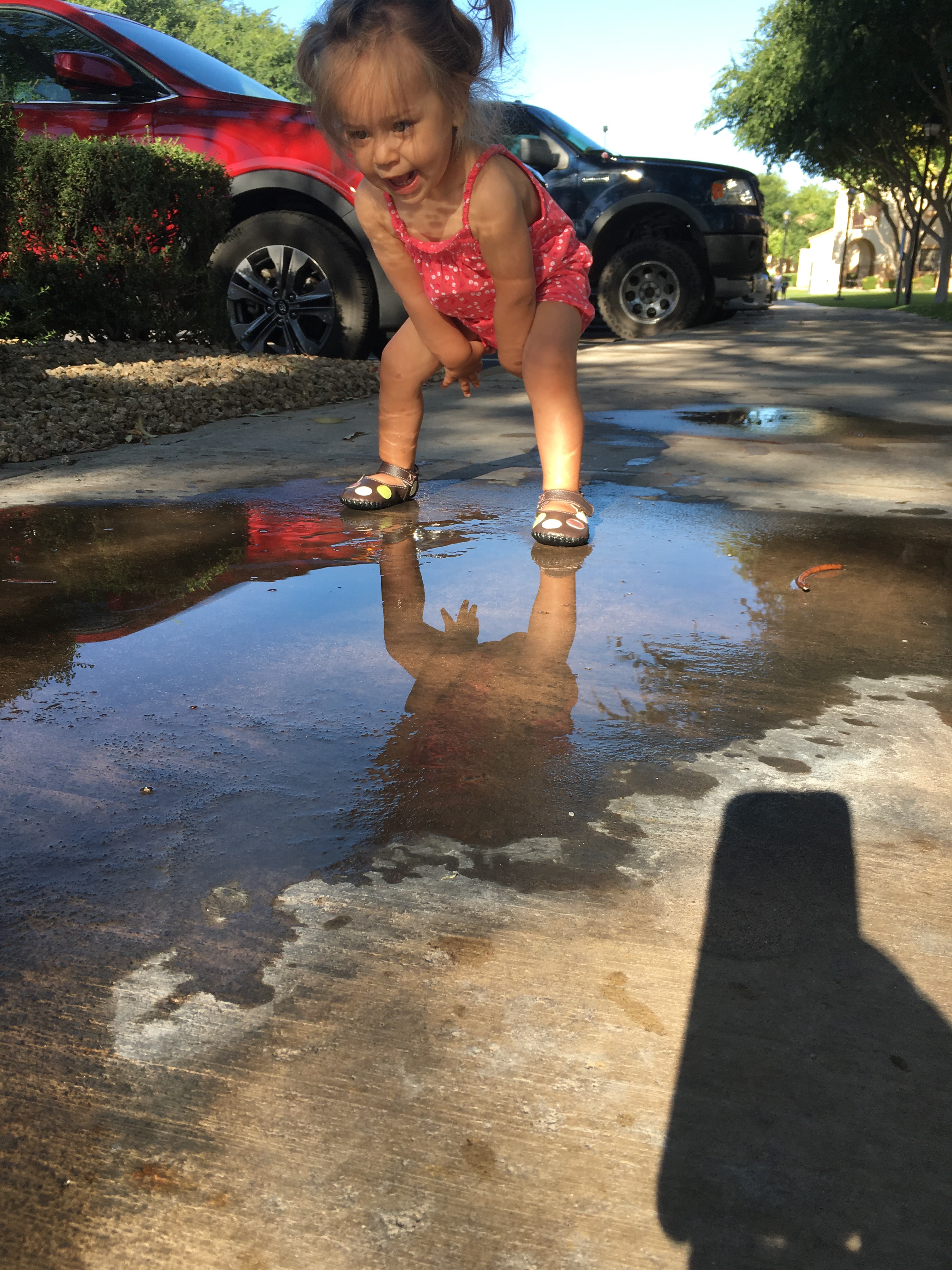 Because it’s against baby code to just walk by a puddle. You must jump!!