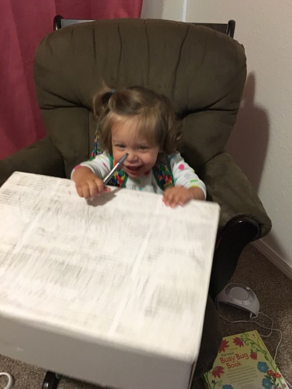 I went through all BB’s old clothes in order to give some away and she was enjoying decorating and labeling boxes for me while I finished up after she woke up from her nap!