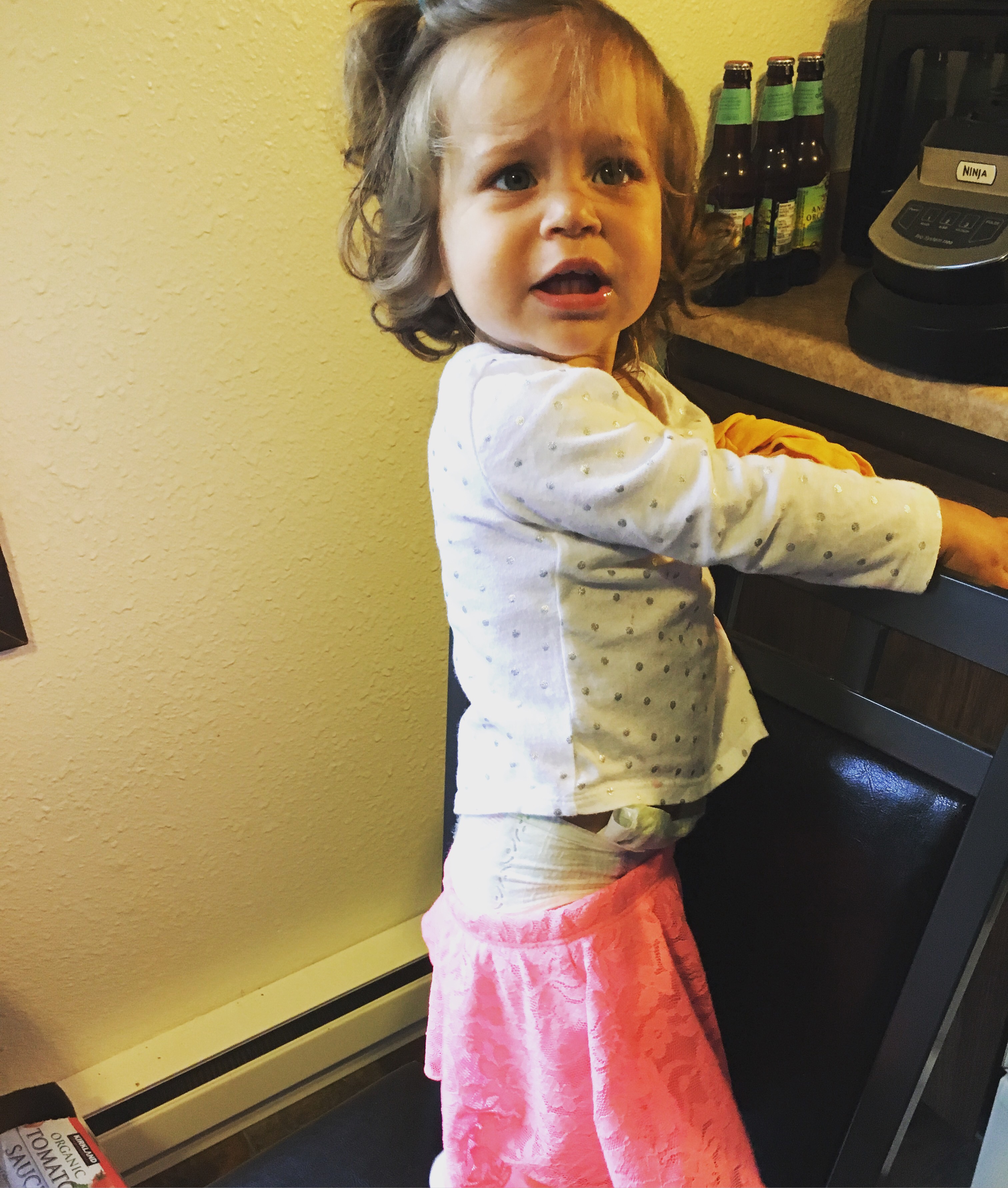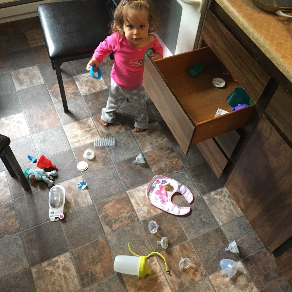 I don’t know why I clean the house. I was feeling especially proud that the kitchen was nicely cleaned and the floors swept and mopped and…. in 2 seconds flat she puts her mark back on it. Fortunately the mess doesn’t bother me too much! See mom and dad my messy room as a kid was just practice for having kids of my own!