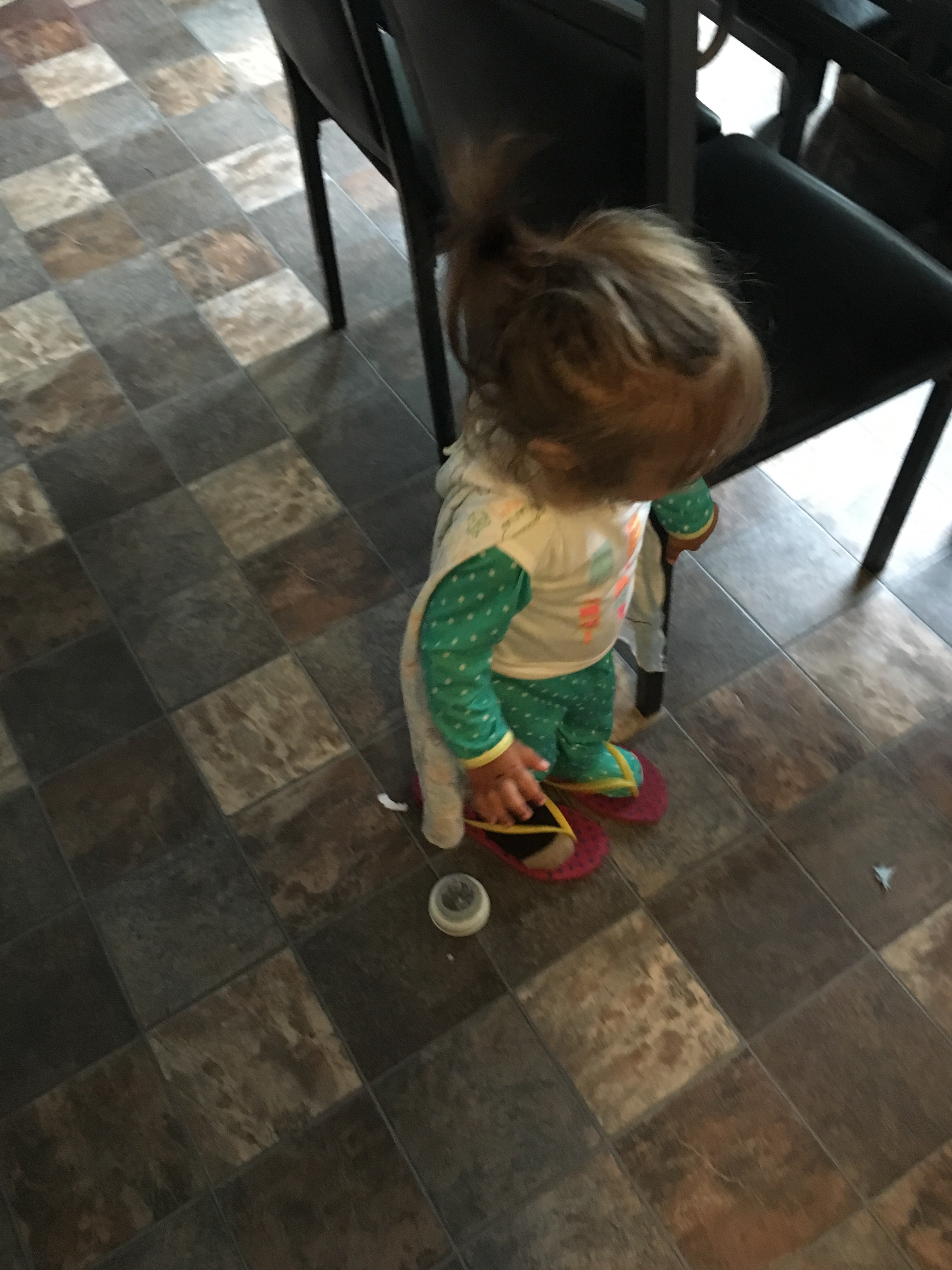 BB has been wearing my flip flops a lot. This time she basically dressed herself and I have a feeling these outfits are going to be a new regular soon! She put a shirt over her PJ’s, a cape, one of my socks, and flip flops…. she’s going to start a new fashion trend among the toddlers!