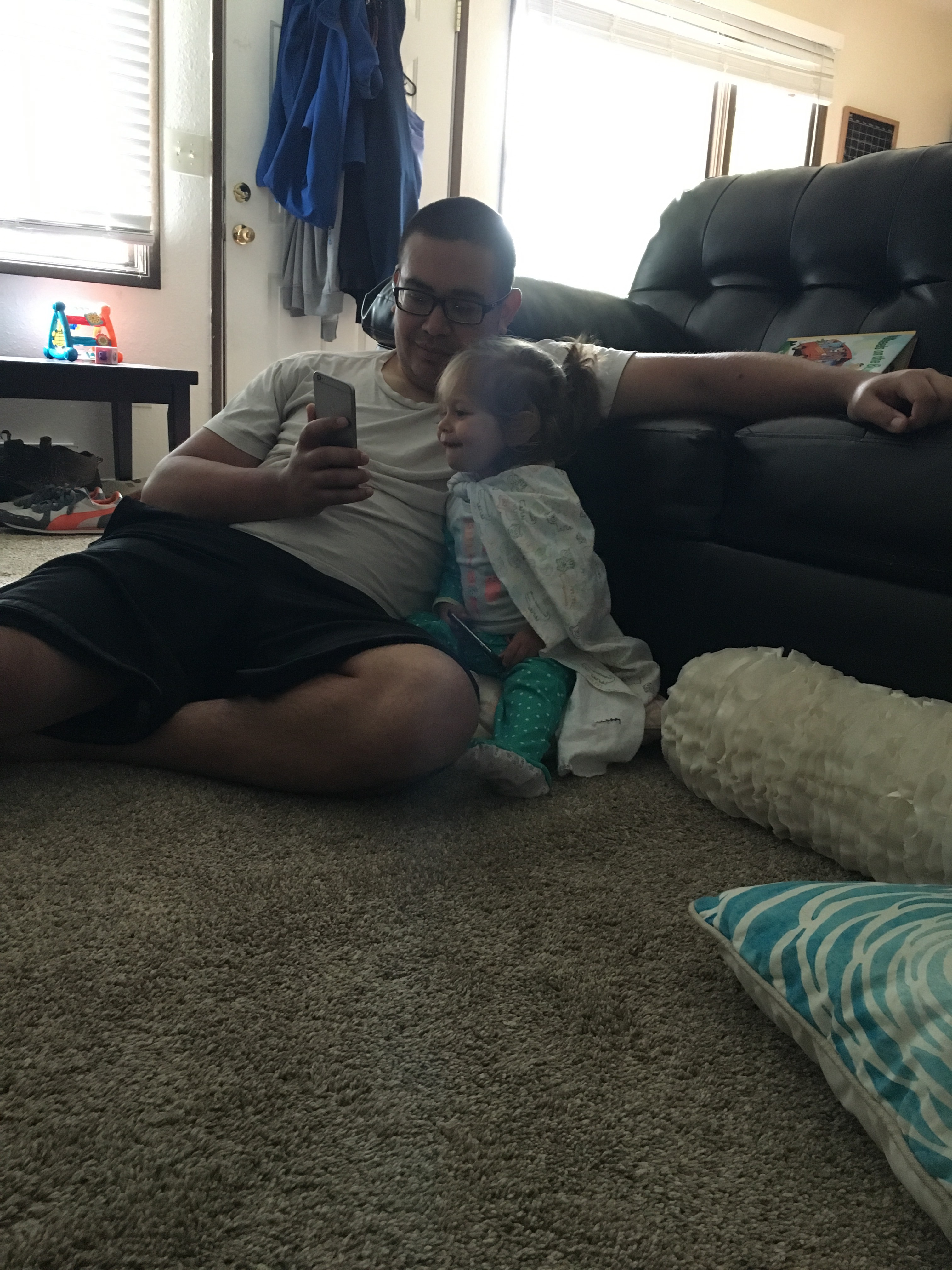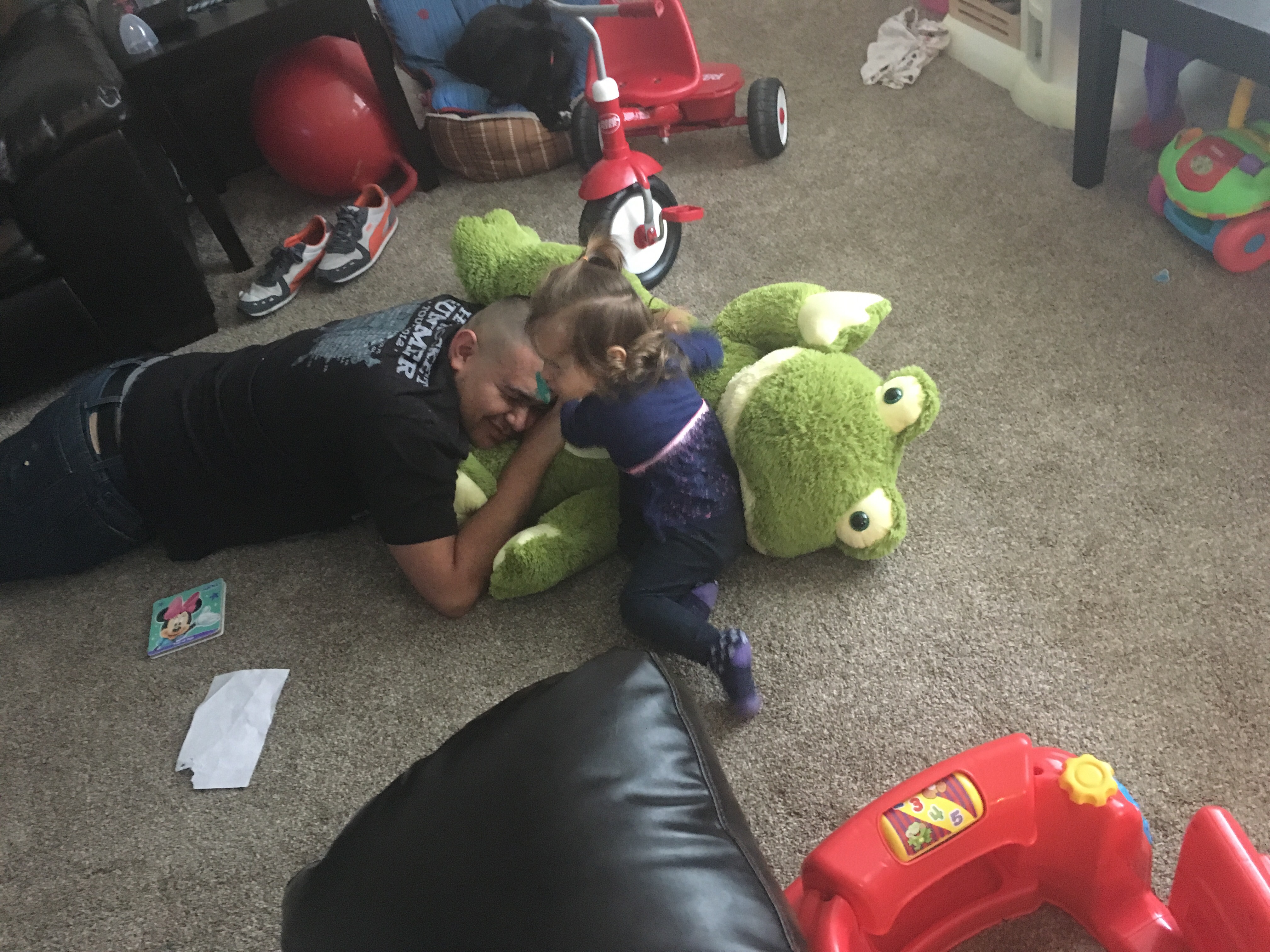 D was pretending to sleep and BB jumped in on it! She loves to play with D!