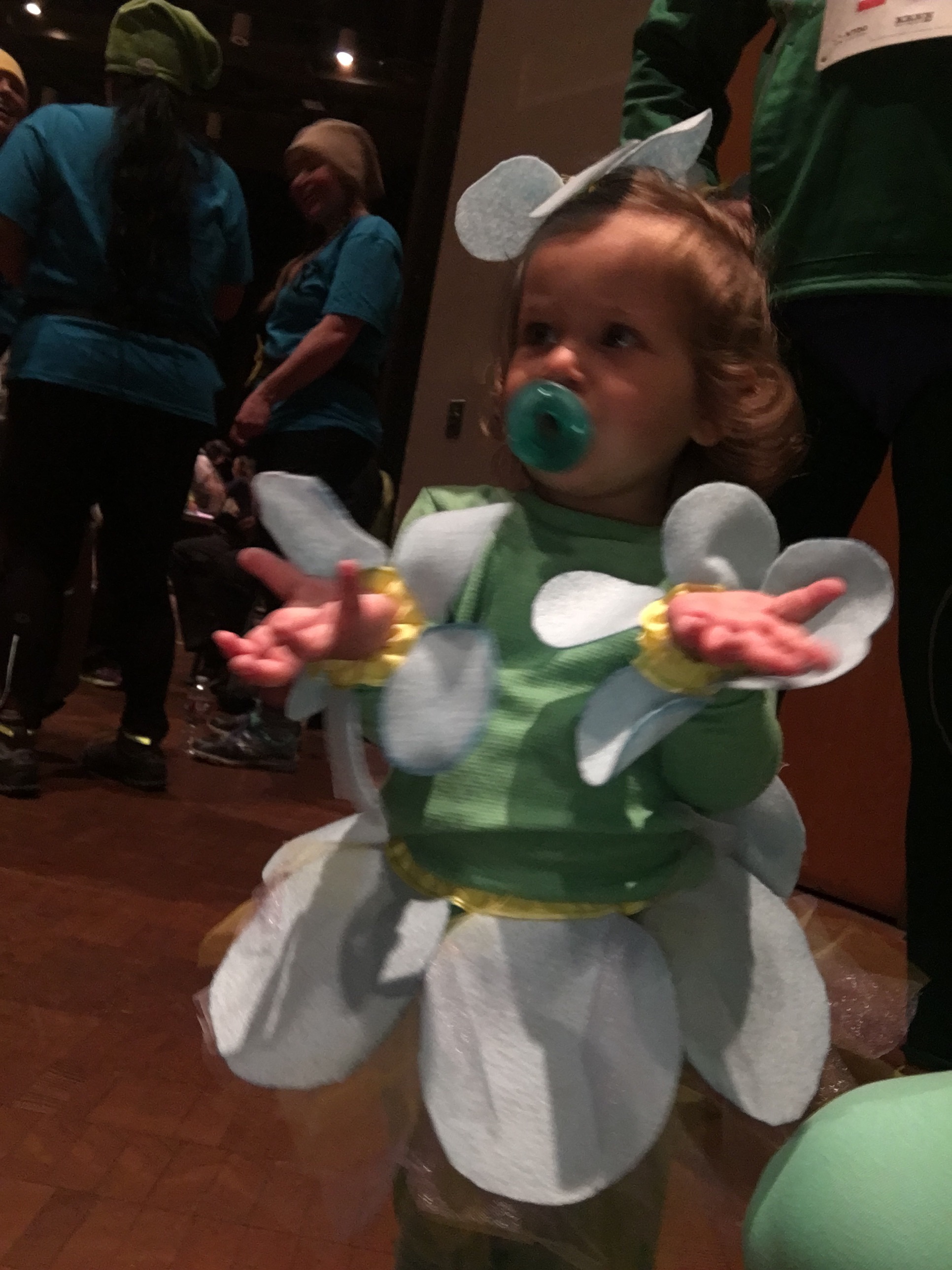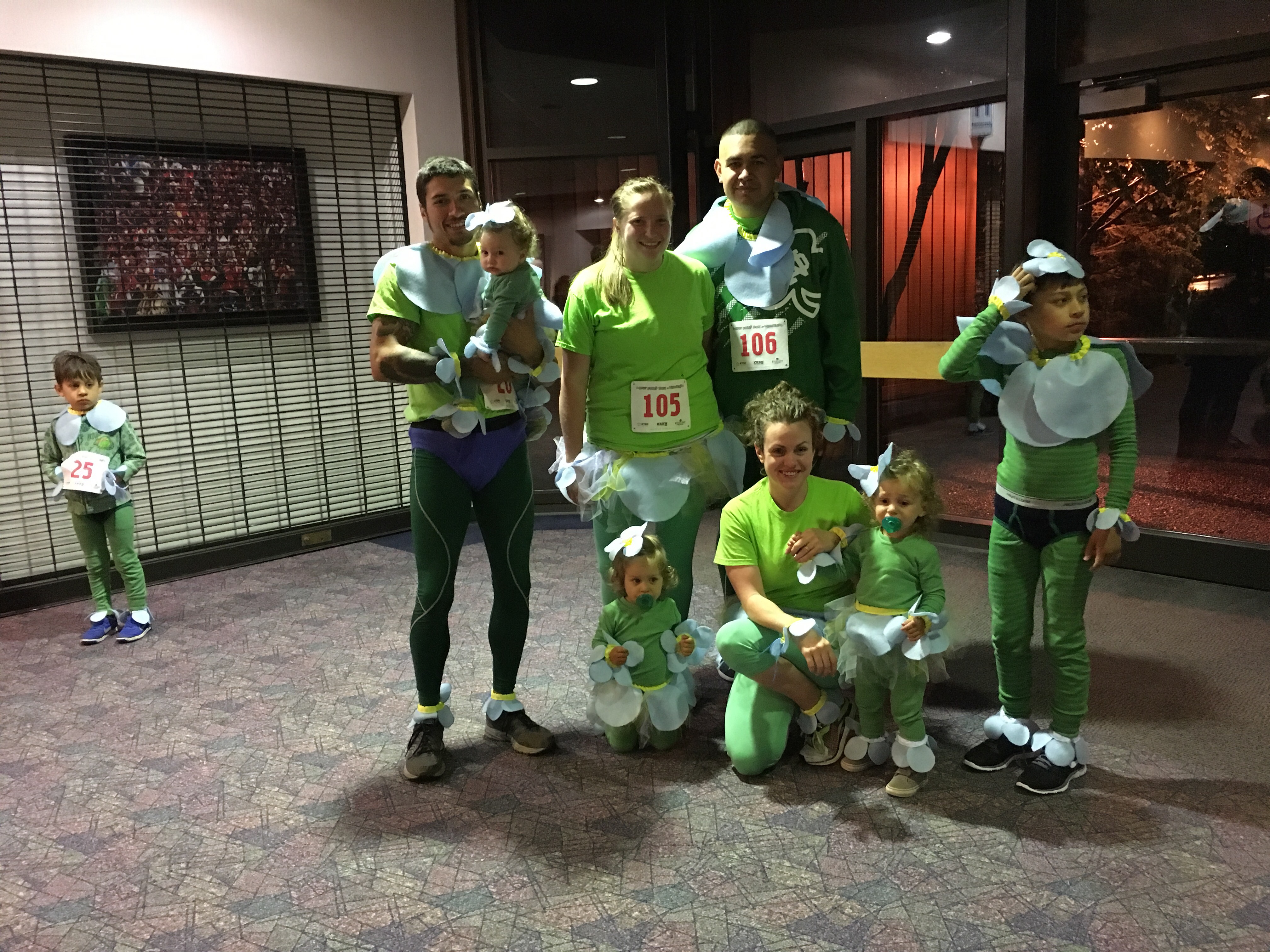 On Saturday D and I ran a 5k with our good friends. The race was called, “Only Fools run at Midnight” and the race started at midnight. There was a costume contest before hand and we all dressed as Forget-Me-Not’s Alaska’s state flower! We won runner up which was ironically a swag bag with a bunch of stuff from D’s work! We thought that was kind of silly!! Running a 5k at midnight was quite the adventure! My friend has 4 kiddos and the oldest boys did awesome running with us! BB happily sat in her stroller most of the ride until we started running into the rain. It was just getting dark when we started. This run started to get me excited about running again and I have officially started a half marathon training program! Eek! We will see how that goes!