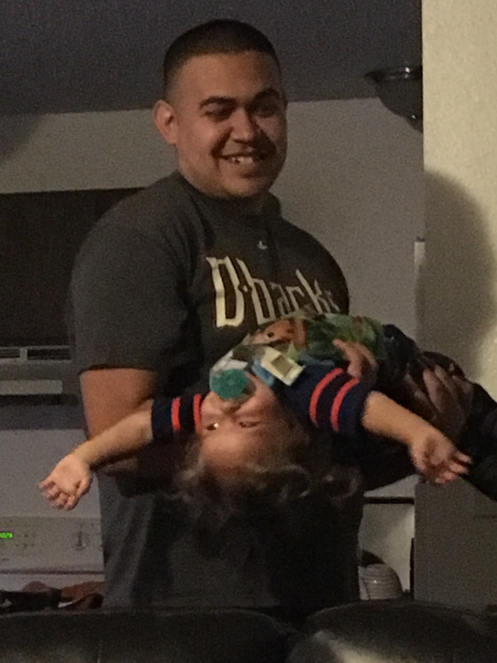 This is a glimpse into our bedtime routine. I get BB nice and calm and ready for bed and then D takes her to bed. Usually that nice and calm baby gets fired right back up and this is often how it looks as D takes her to bed. Arched back giggling!
