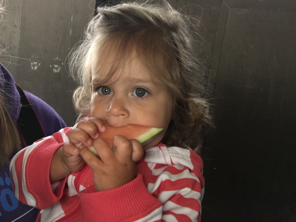BB begged to enter the watermelon eating contest but we missed her age group!