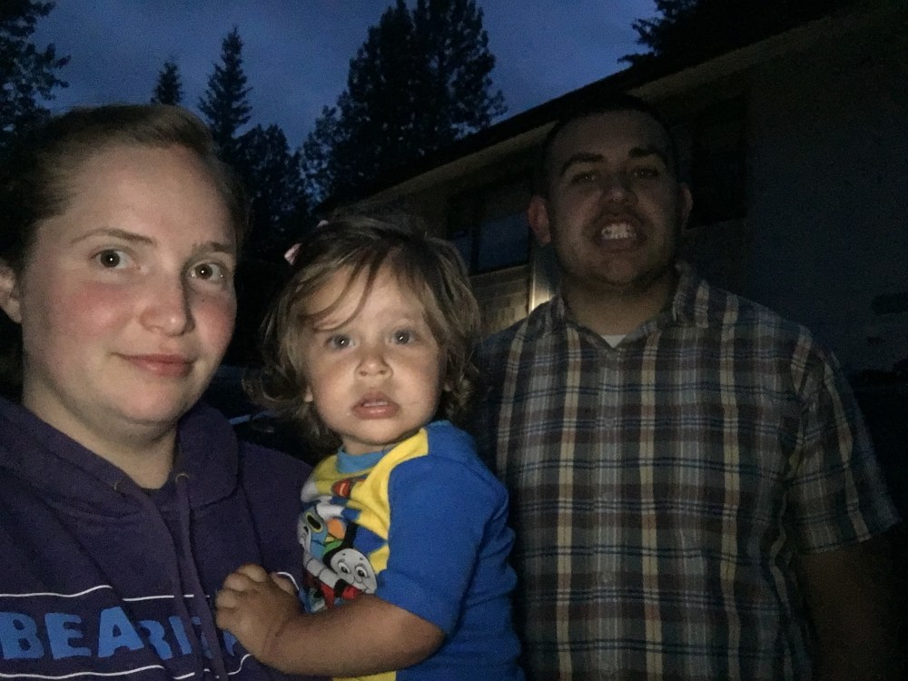 This was our family picture from watching the show outside our house, notice it’s still not even pitch black out!!