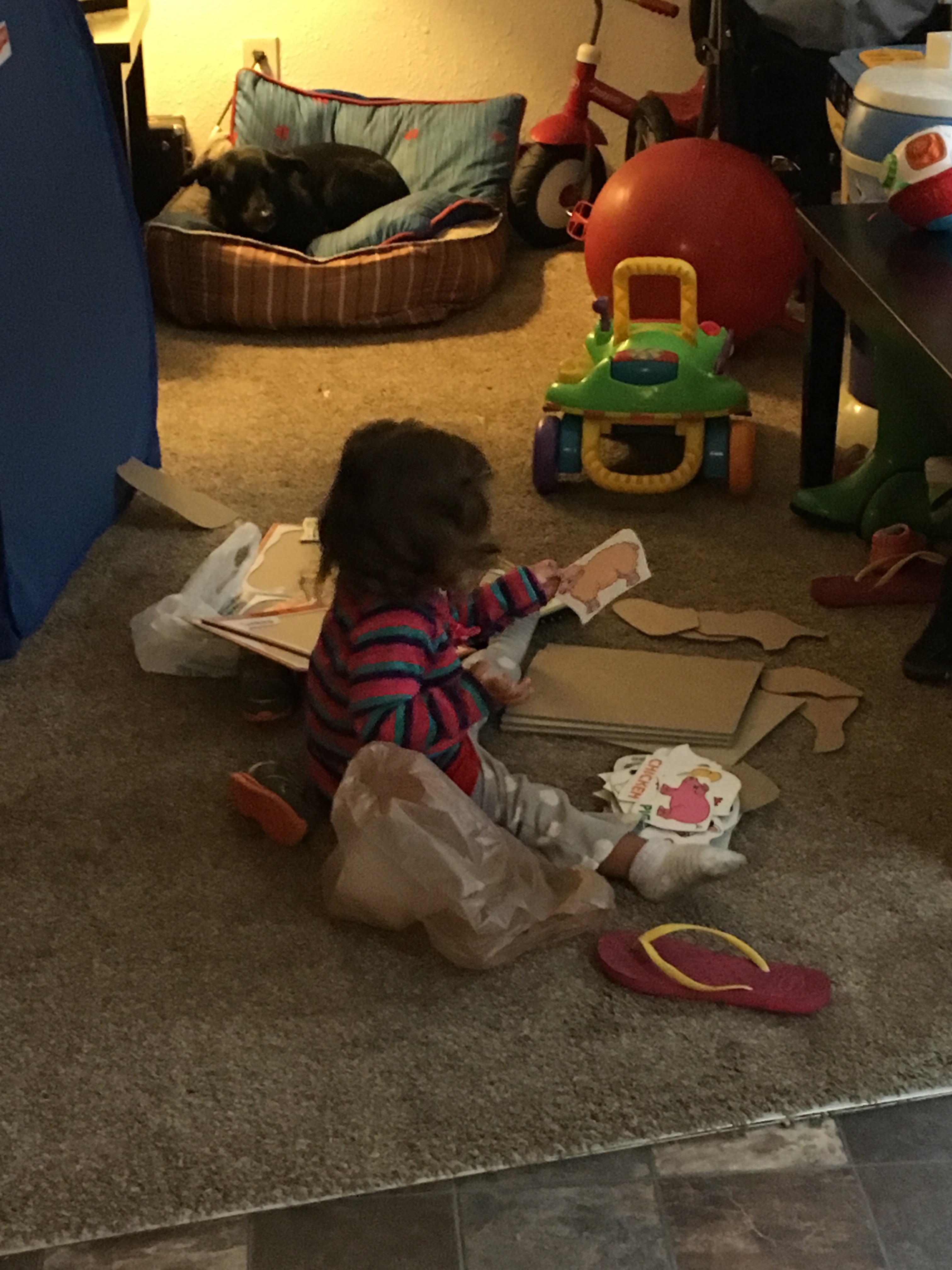 When BB decided she needed to reorganize the puzzles… and took all the pieces out and stacked them in one pile and the boards (that were completely unmarked to give you any idea what puzzle it was) in another. Thankfully D is amazing and helped clean it up!