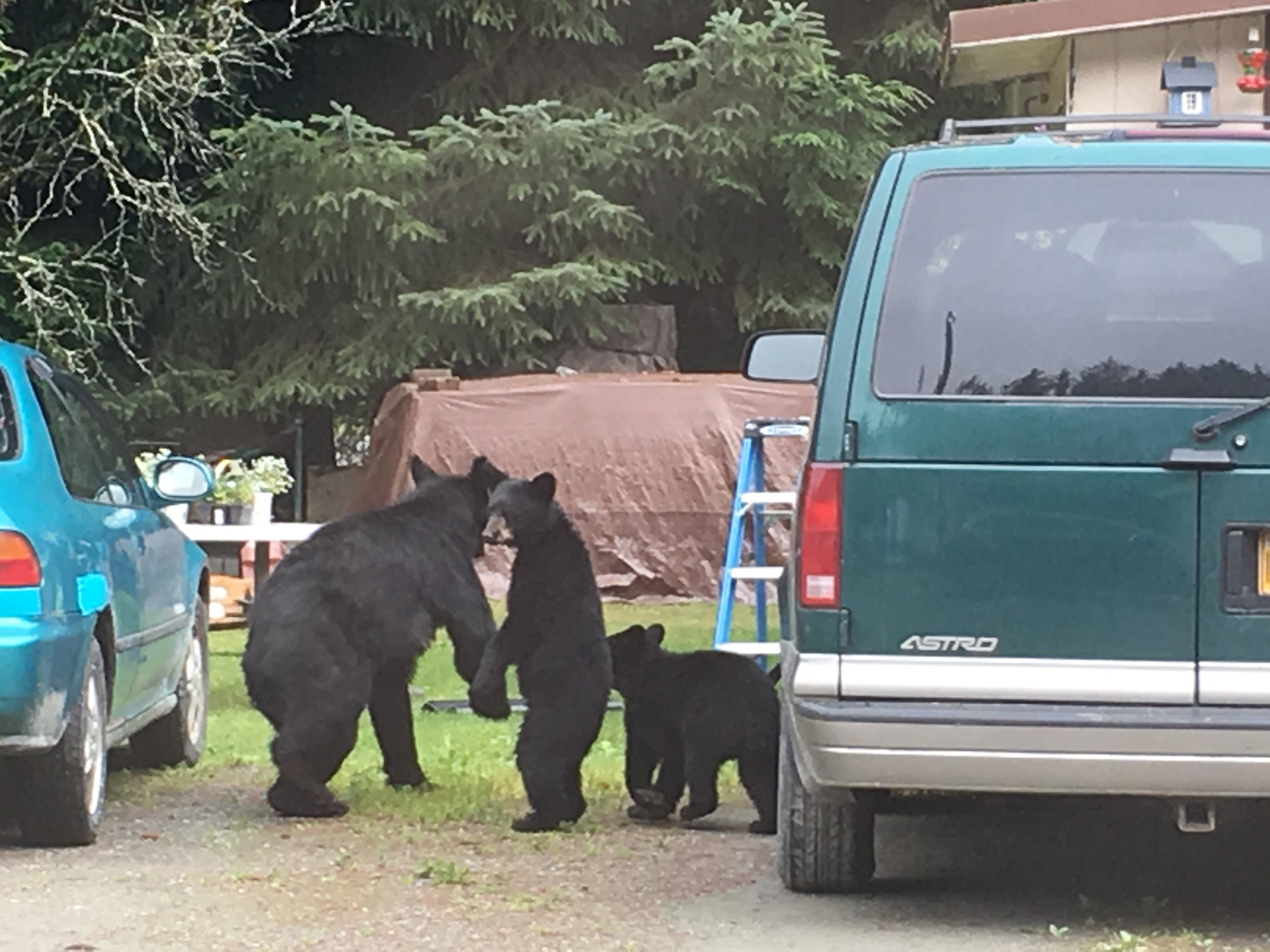 We saw this momma and her babies on our way home one day, quite the surprise!