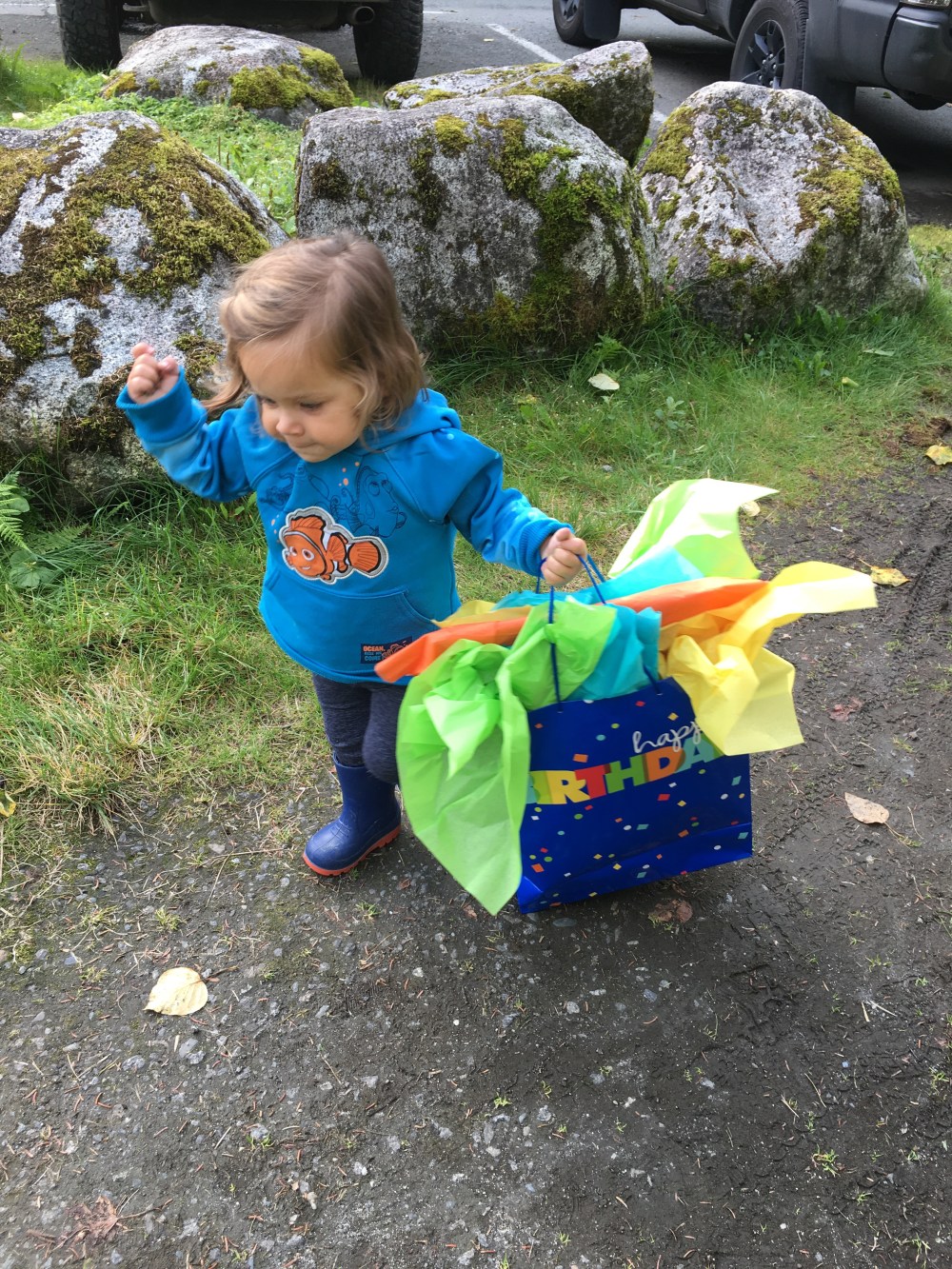 She is so determined to do things herself and be independent. She insisted she got to carry the gift all by herself!
