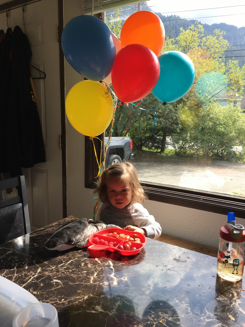 We went to BB’s friends 2nd birthday and she got to take home this bundle of balloons… Lets just say there are going to be balloons involved in her birthday with out a doubt! She loved them!!