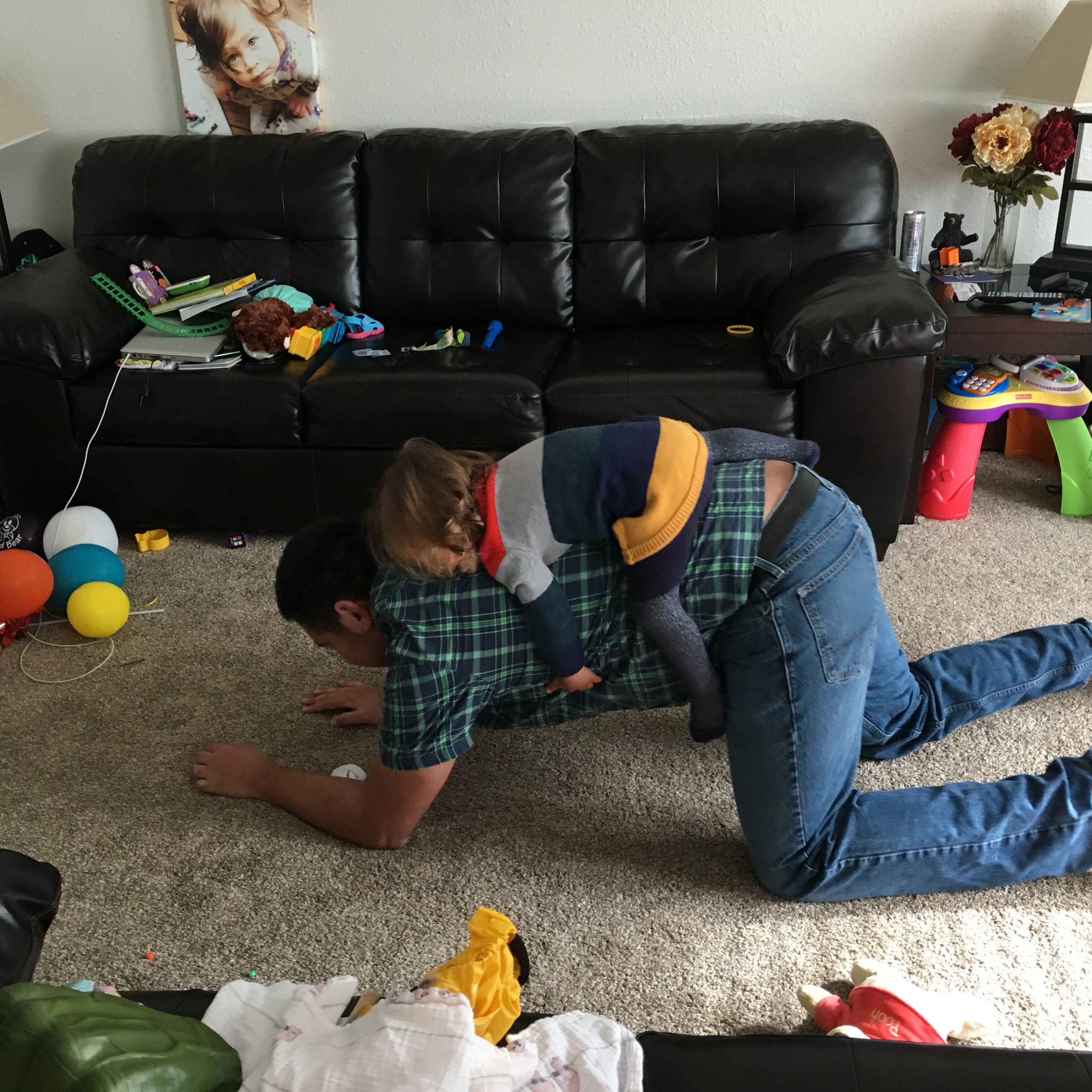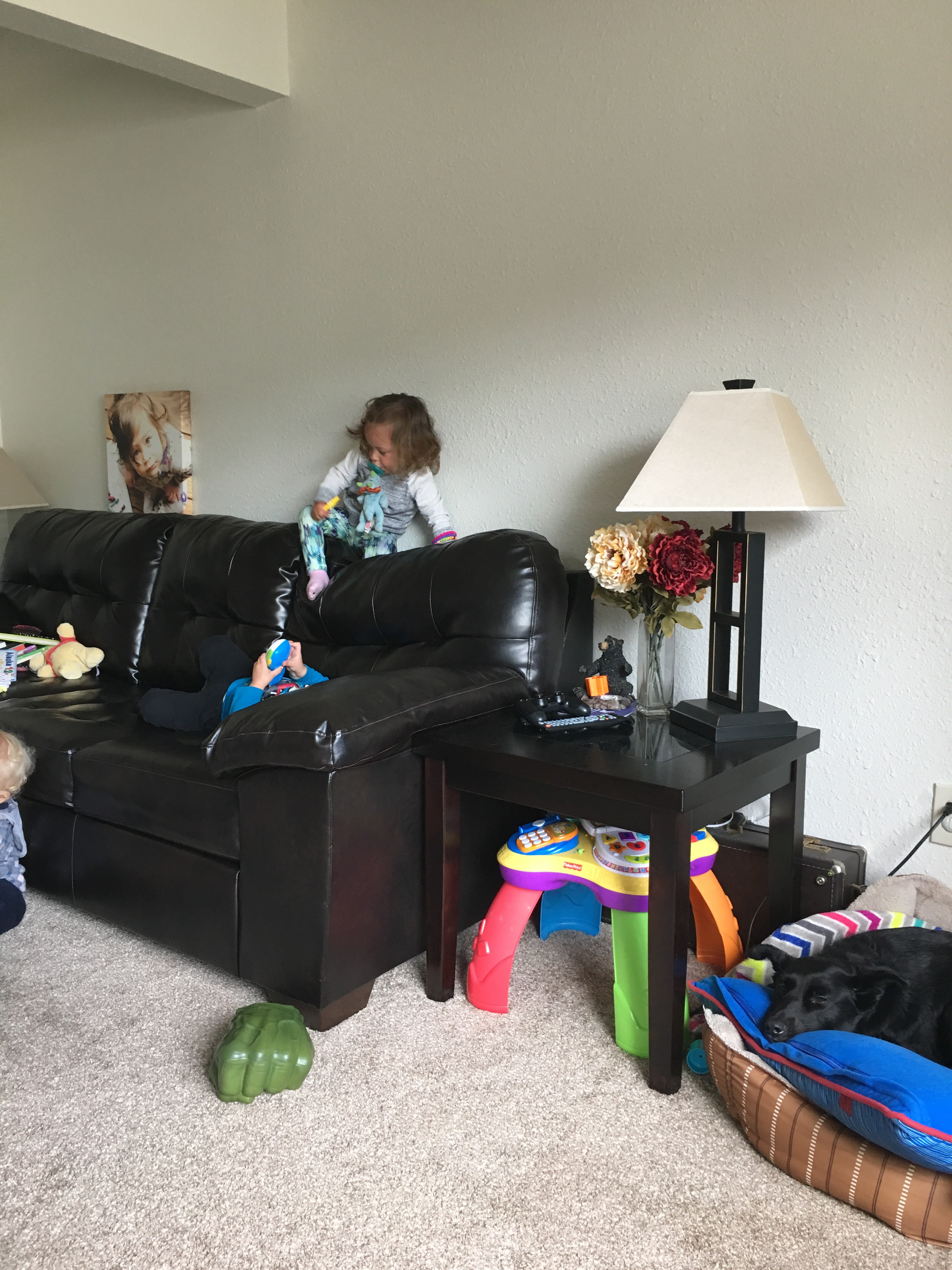 BB loves her daddy like nothing else! It’s quite possibly the sweetest thing ever!! Also, here is a really honest look into our living room… We usually always have a stack of books on the end of our couch and the occasional random toy or stuffed animal.
