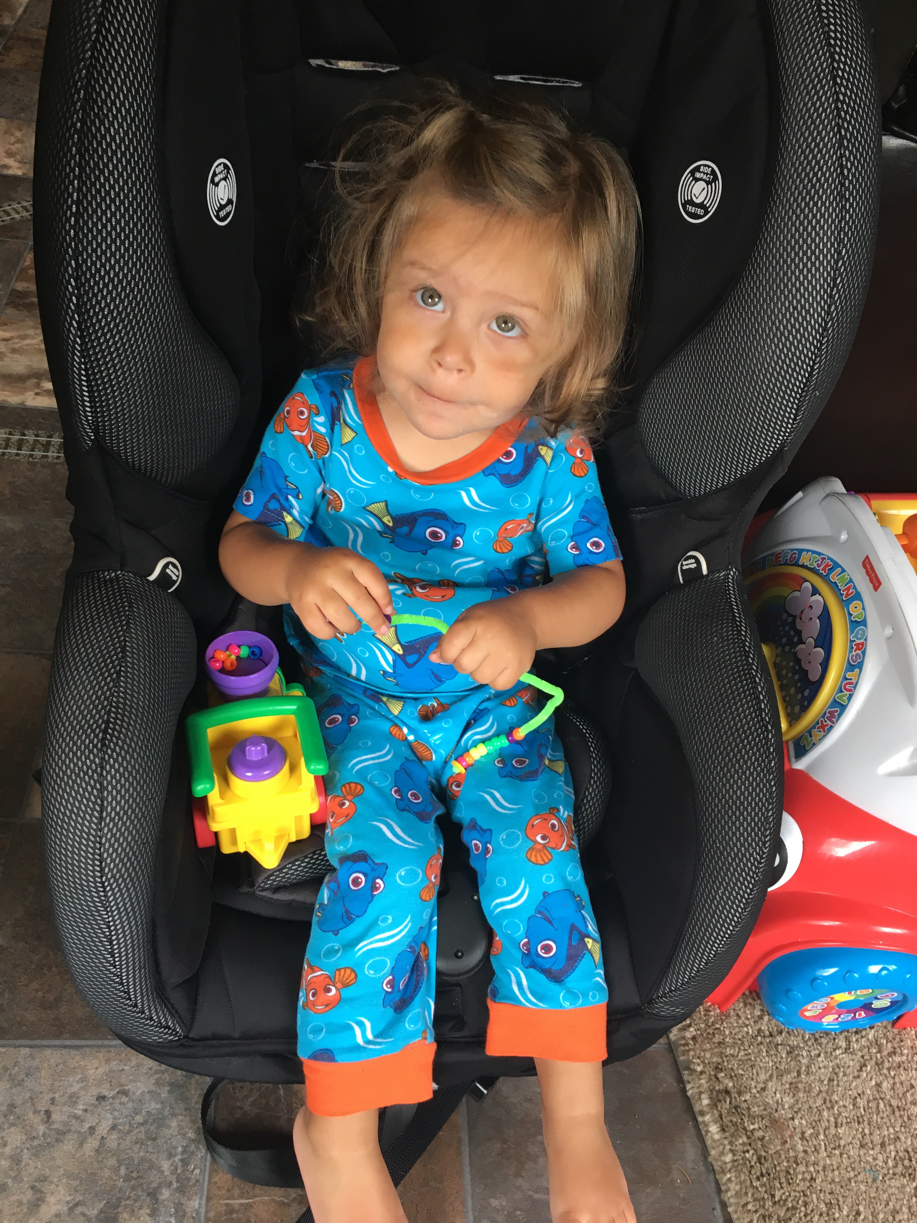 We washed BB’s car seat and she was all about wanting to sit in it. She would get in ask us to buckle her and then tell us, “go, go!”