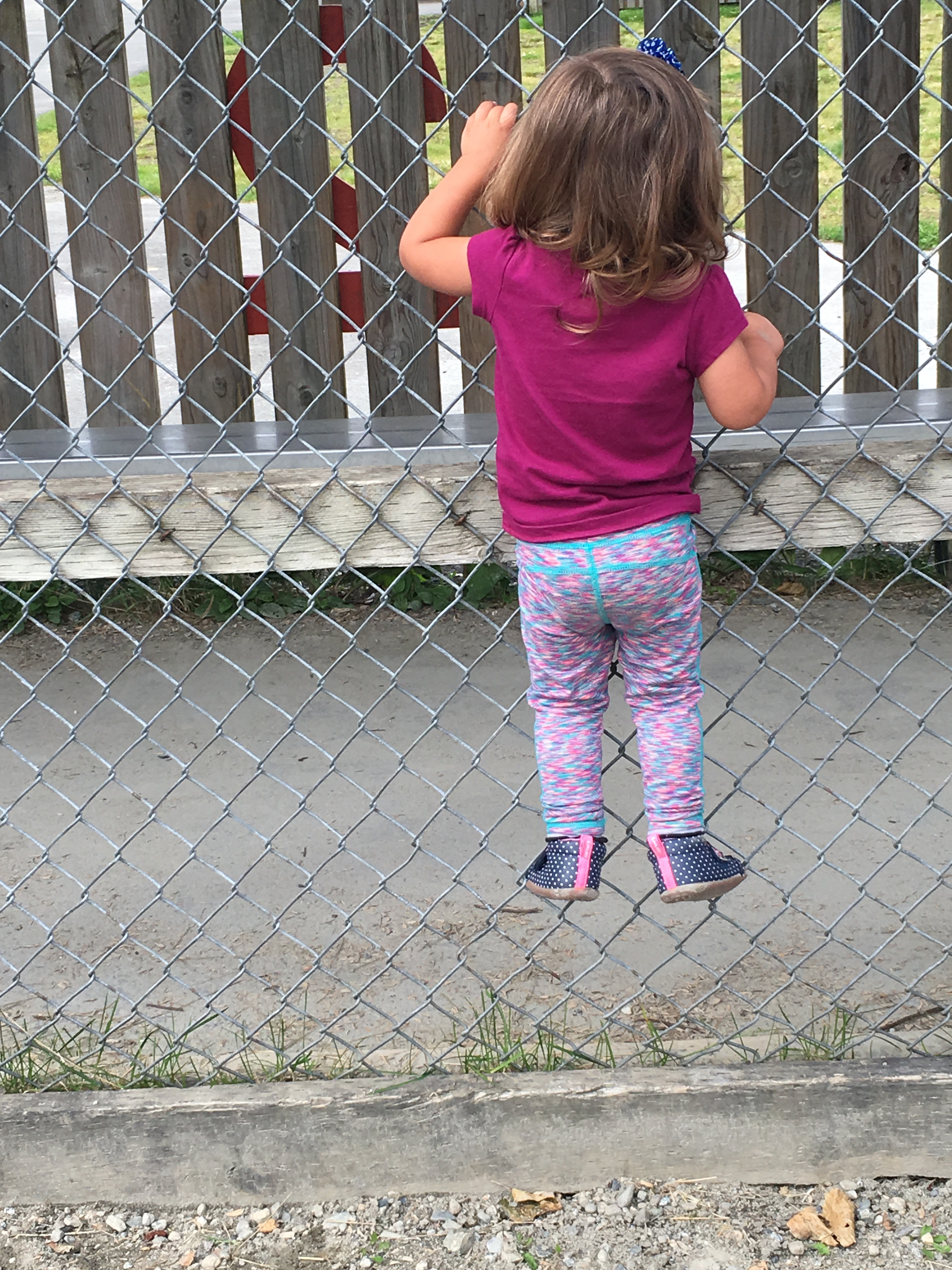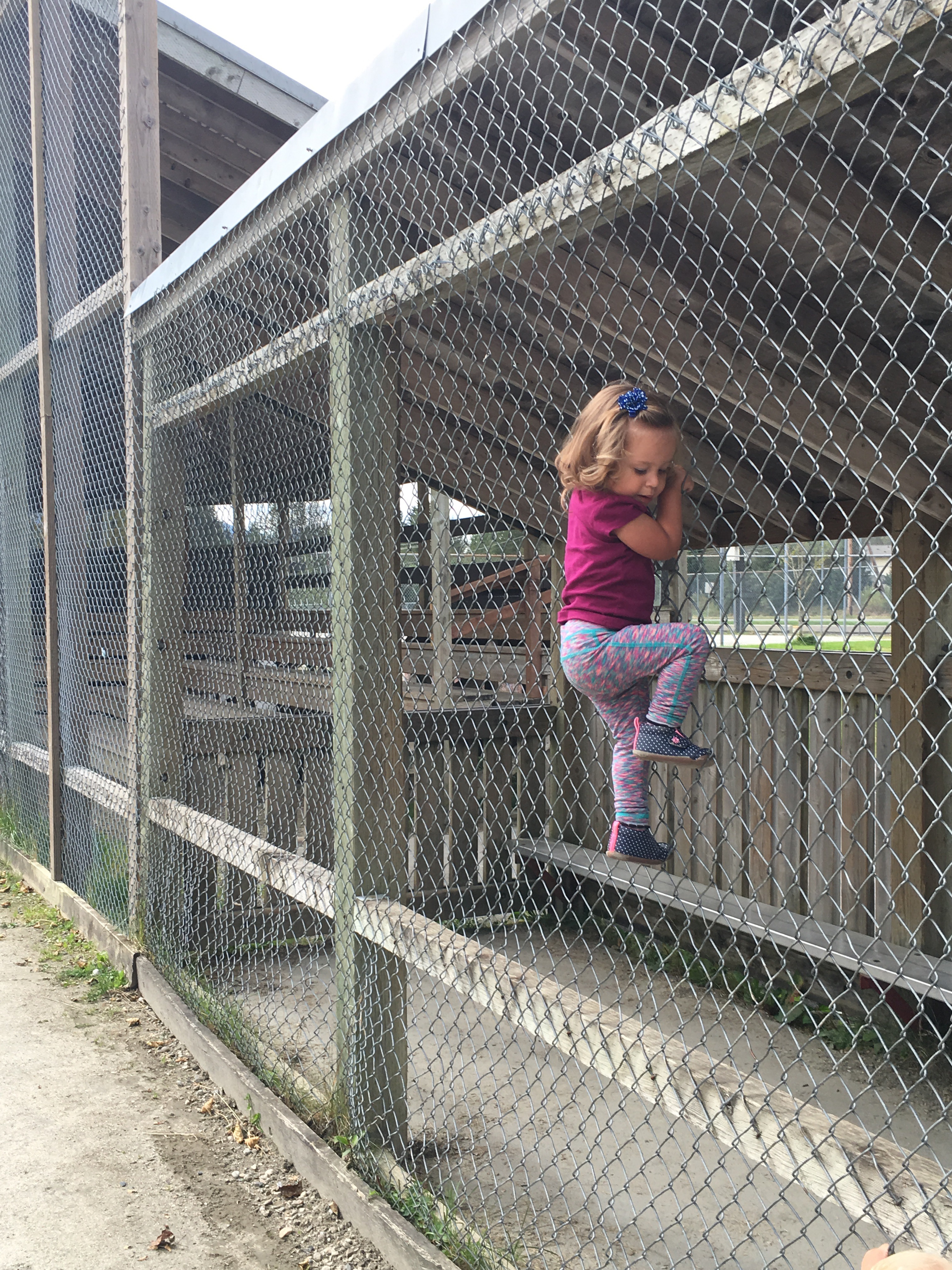 It was really funny that this day BB chose to climb the fence. That morning D was expressing her concern with BB’s lack of desire to climb out of her crib. While I see this as a blessing, I thought it was really cute he was concerned. I am not worried that she has a fear of climbing…