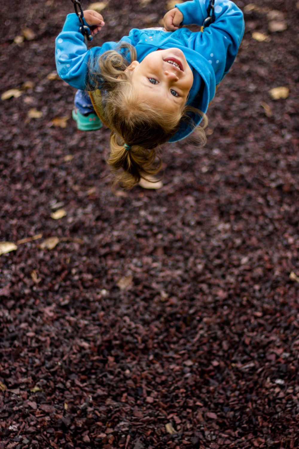 BB loves to swing and the park closest to our house only has the big kid swings. At an early age she learned how to hold on and swing. Now, she is fearless, and this particular time decided she wanted to lean back and really scare me! It sure did make for some fun laughs and good pictures!