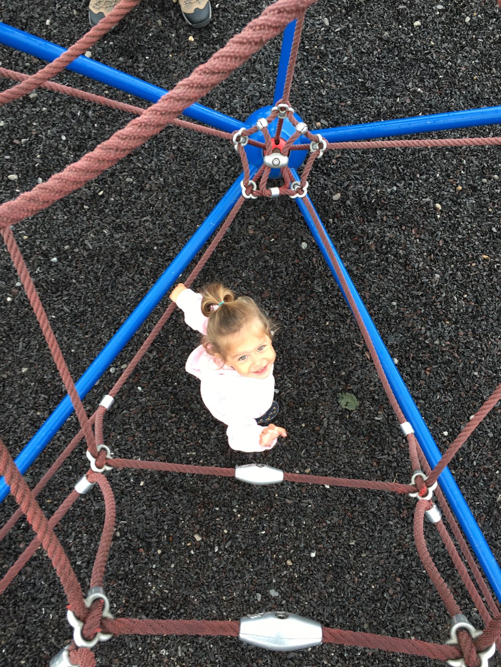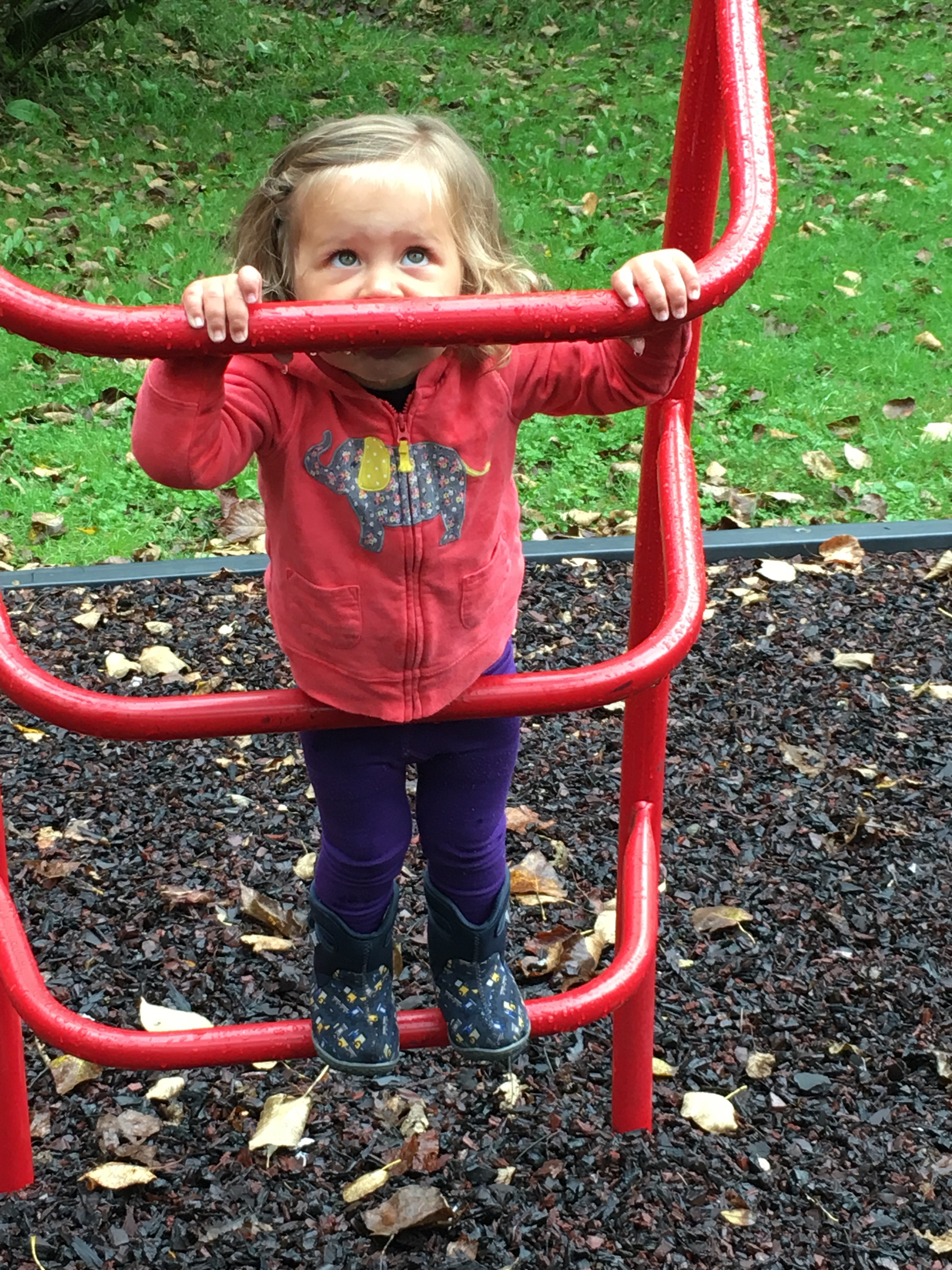 We found this amazing playground over the summer at the elementary school near our house, unfortunately with school in session we don’t get there very often. However, D and I took BB there over the weekend and she was having a lot of fun playing. She was a little thrown off by D and I climbing up this structure!