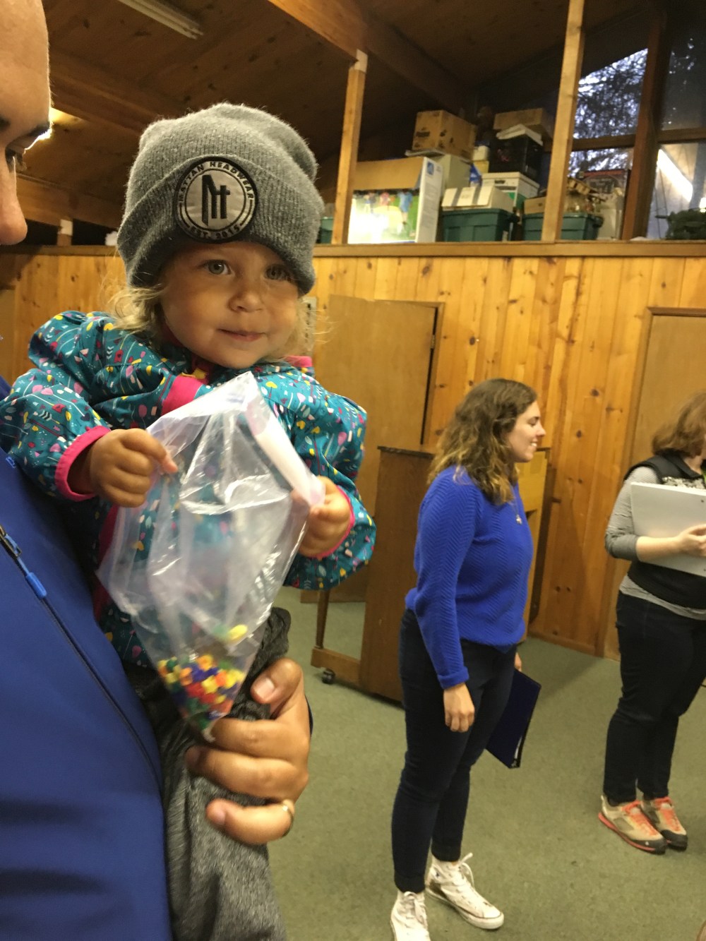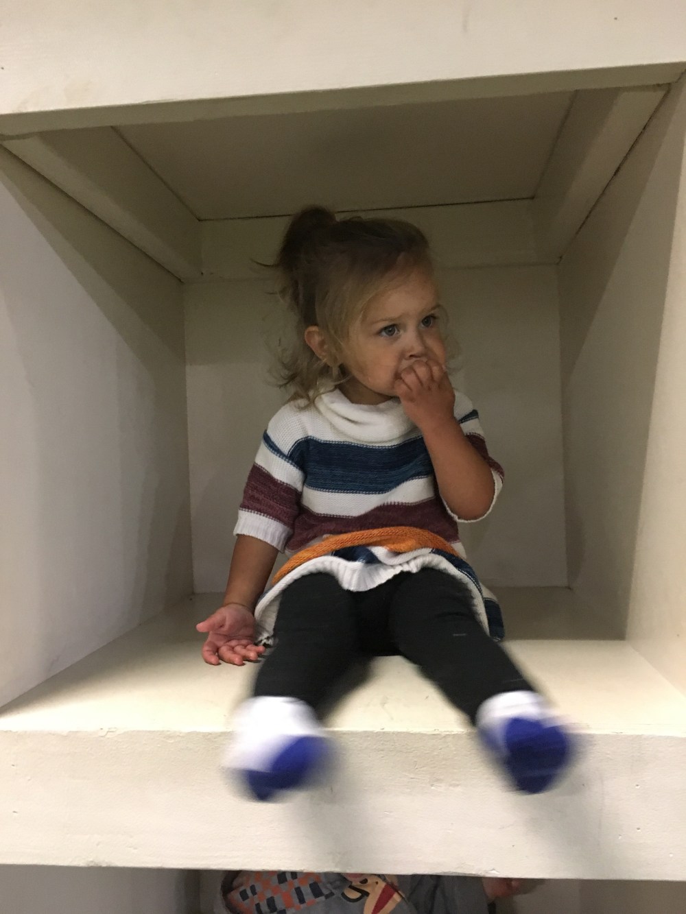 Something really cool about Juneau is that they have a lot of activities durning the week for kiddos and this is at one of them. It’s called the field house and it is an indoor soccer field and they put out a bunch of toys and let the kids go crazy! The best way to contain kids while eating snacks or getting ready to leave is to throw them in the top cubby so they can’t get out. This is BB snacking in her cubby! She loves it in there and usually asks to be put in.