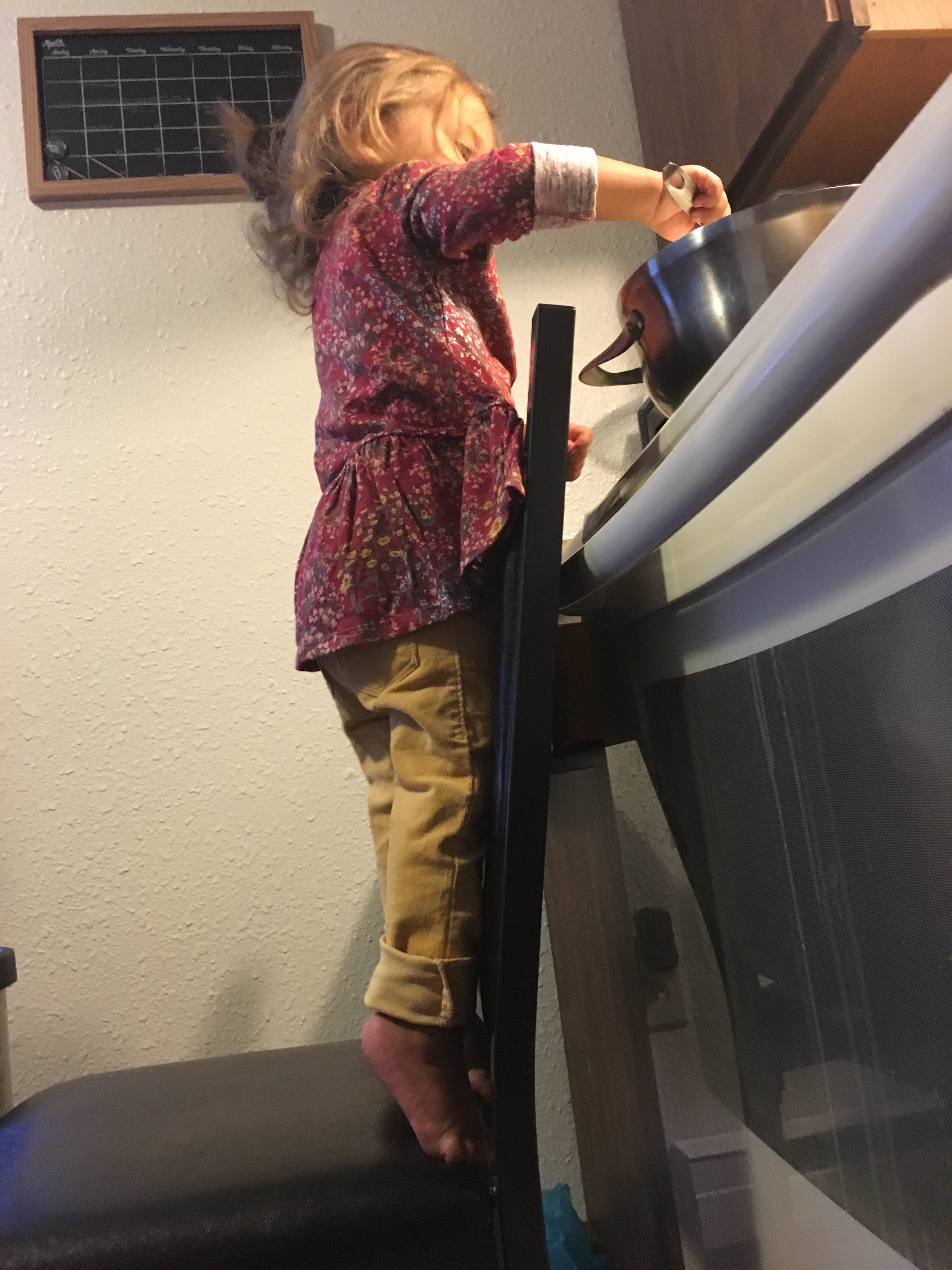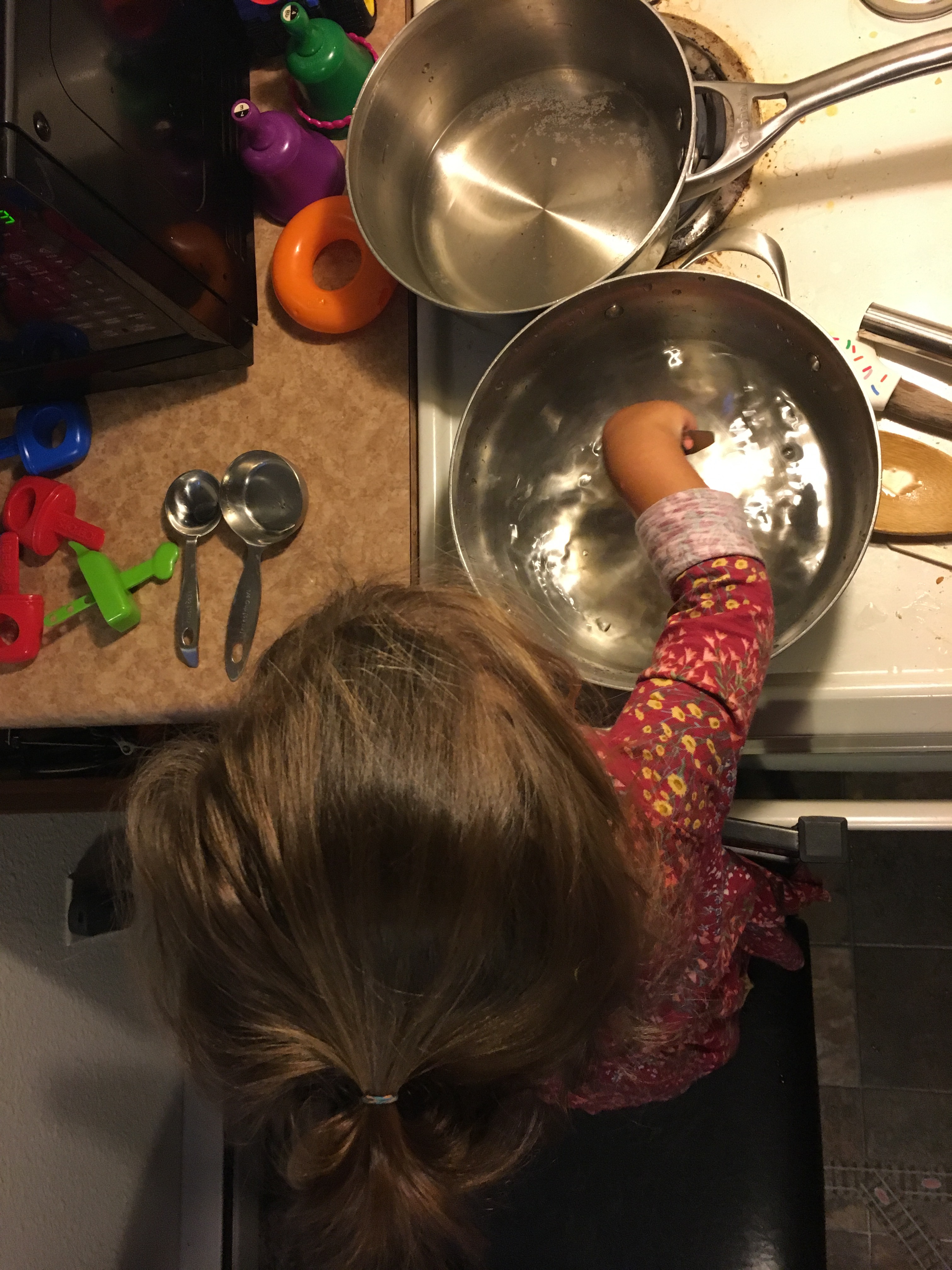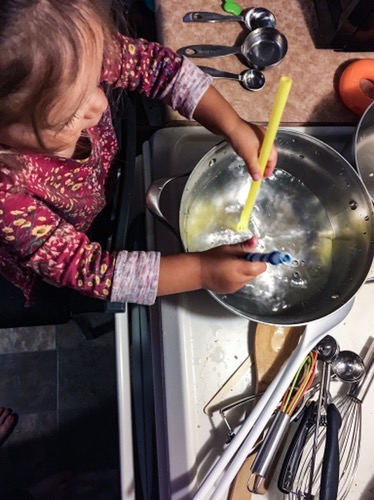 BB loves to help me cook, and this time got a bit out of hand! She emptied the drawers and put everything out on the stoves. It was a lot of fun though!