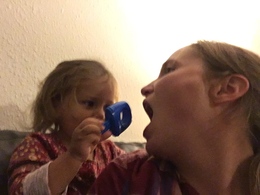 BB loves to “check us out” using her popsicle sticks. Anytime anything happens she goes and finds her popsicle stick and looks at it! She’s a goof1