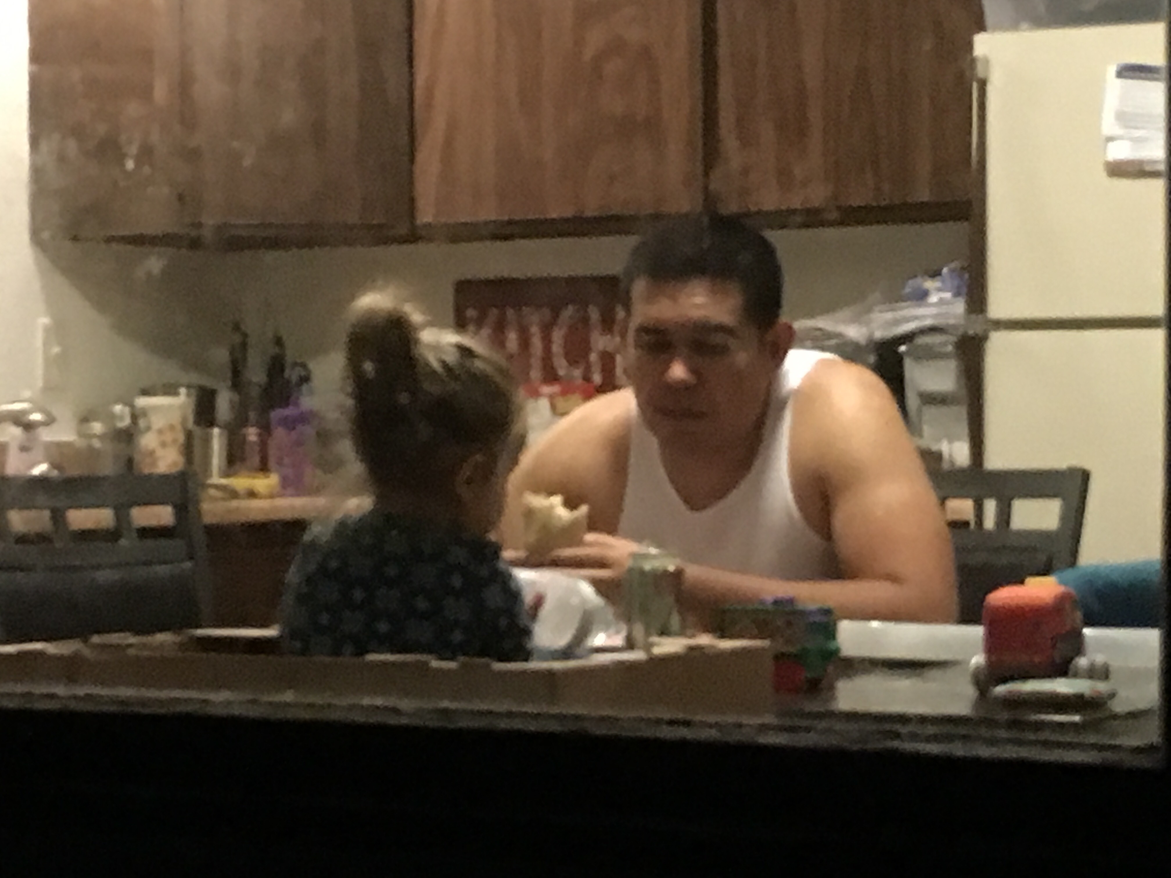 I caught this sweet moment as I returned from walking the dog one night. These two love each other so much.