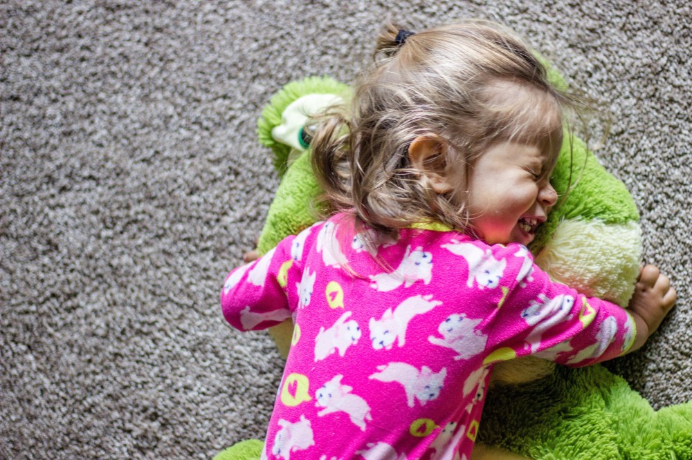 The other night she woke up and was having a hard time falling back asleep. I went in and was rubbing her back and she grabbed my hand and held onto it until she fell back asleep and I slipped away. It was so sweet and tender and special to have her want to cuddle, because that almost never happens! She has also been saying hug and giving hugs to a lot of things/people lately. It’s adorable!