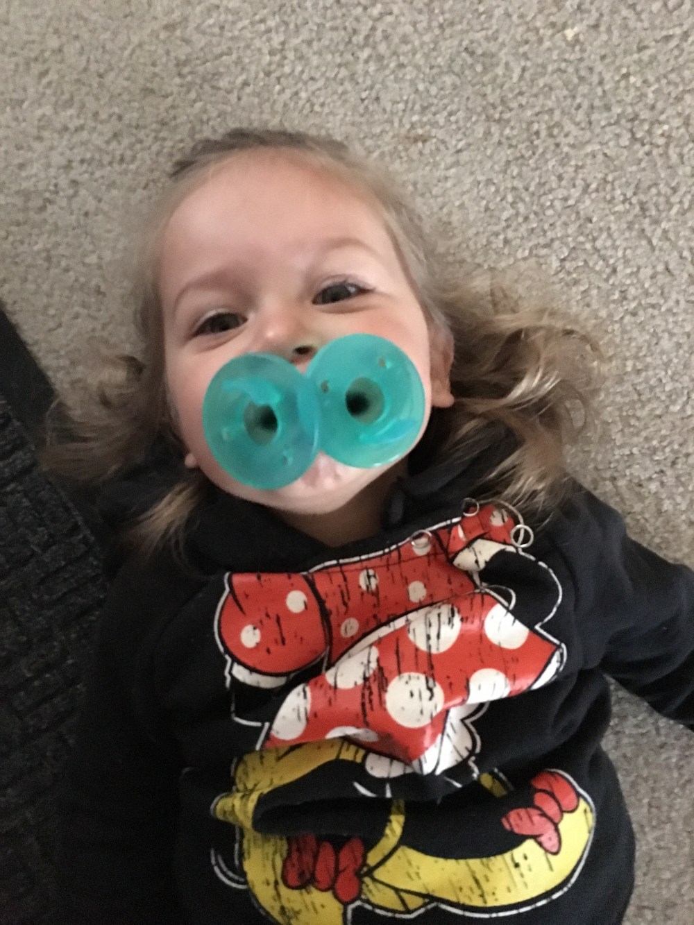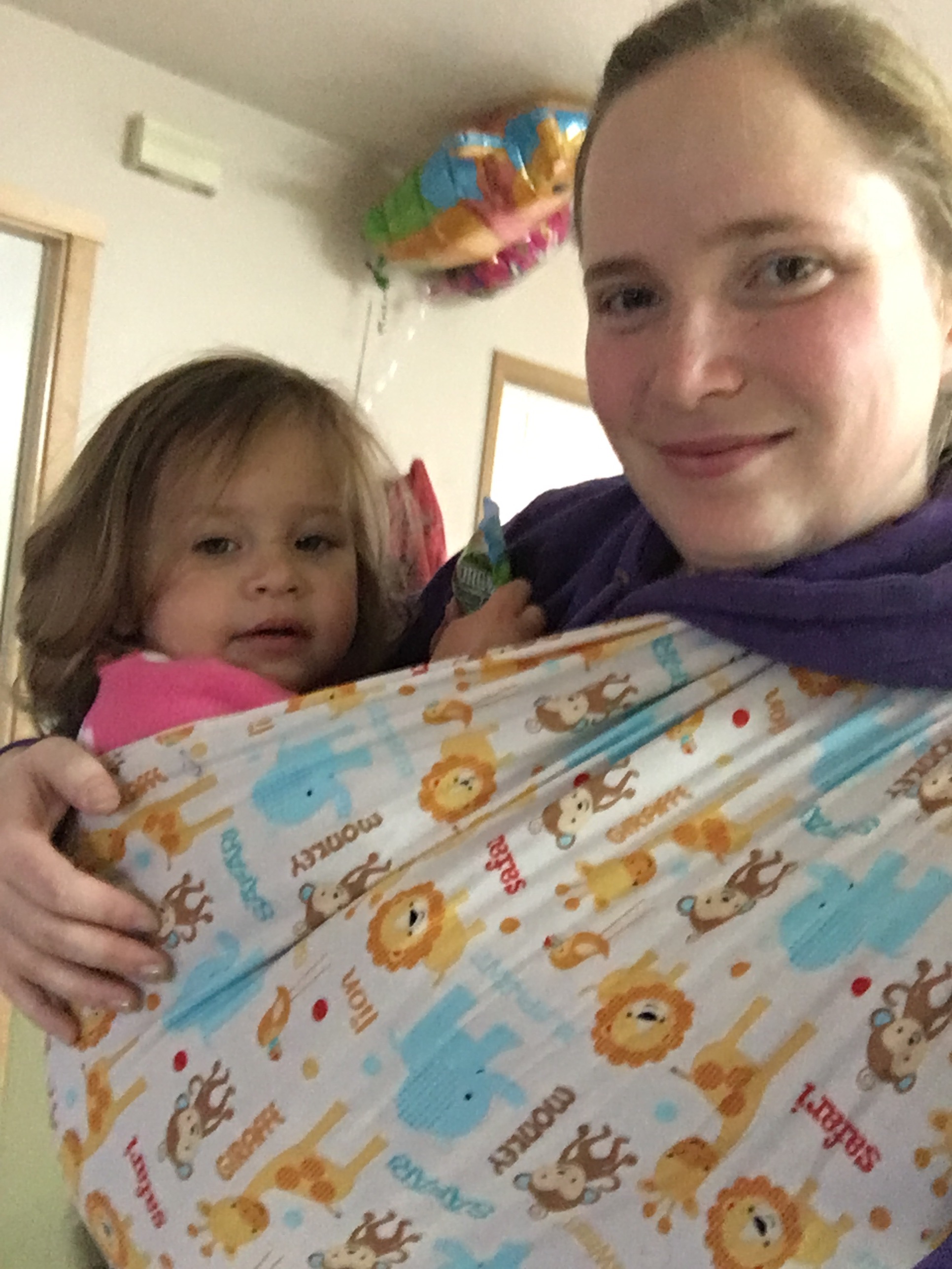 BB’s great grandma made this for her when she was a newborn. We used it then and BB asked to use it again… I was surprised she fit!