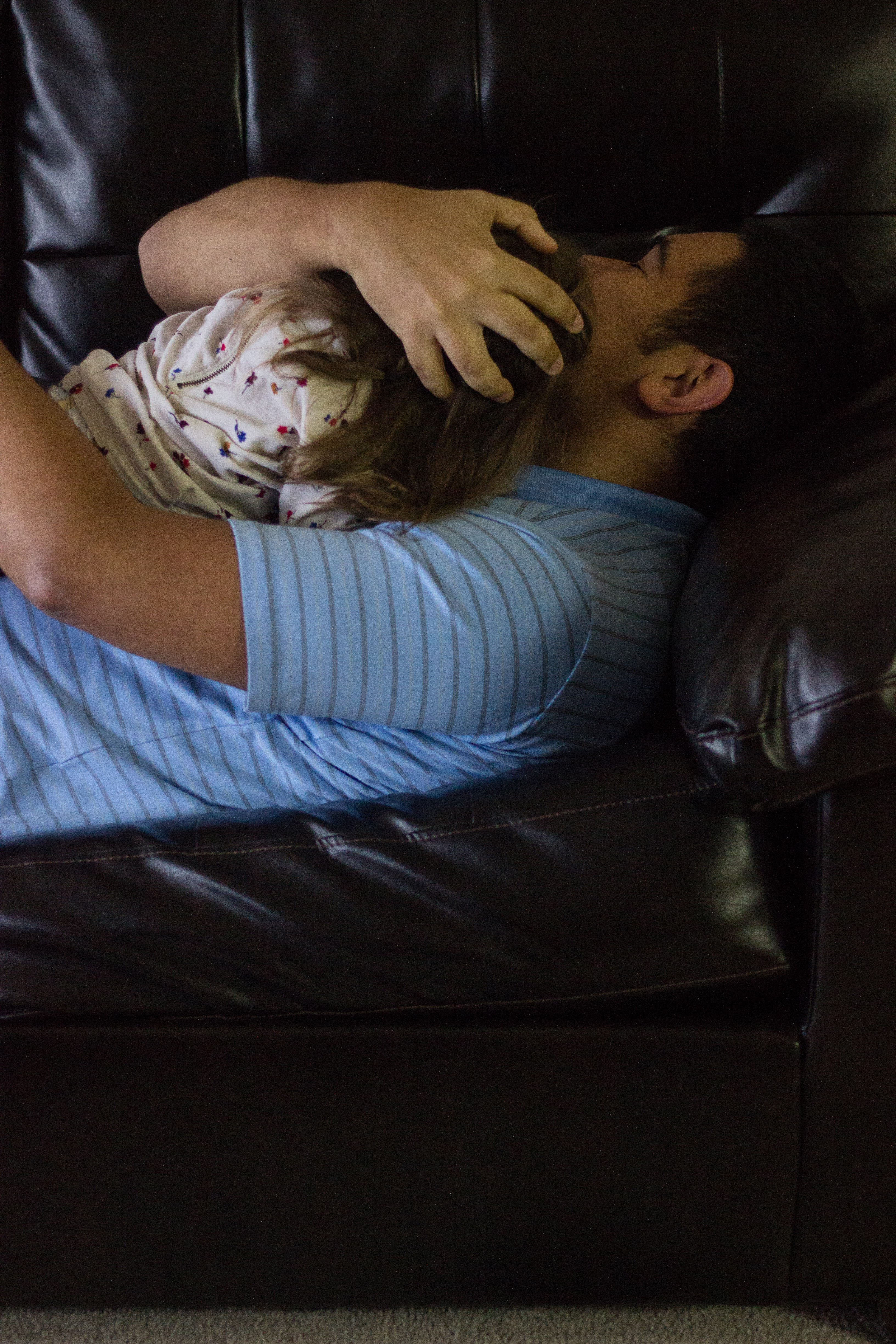 D and BB snuggling. He was having a moment remembering how small she used to be and how she used to fit on his chest with extra room.