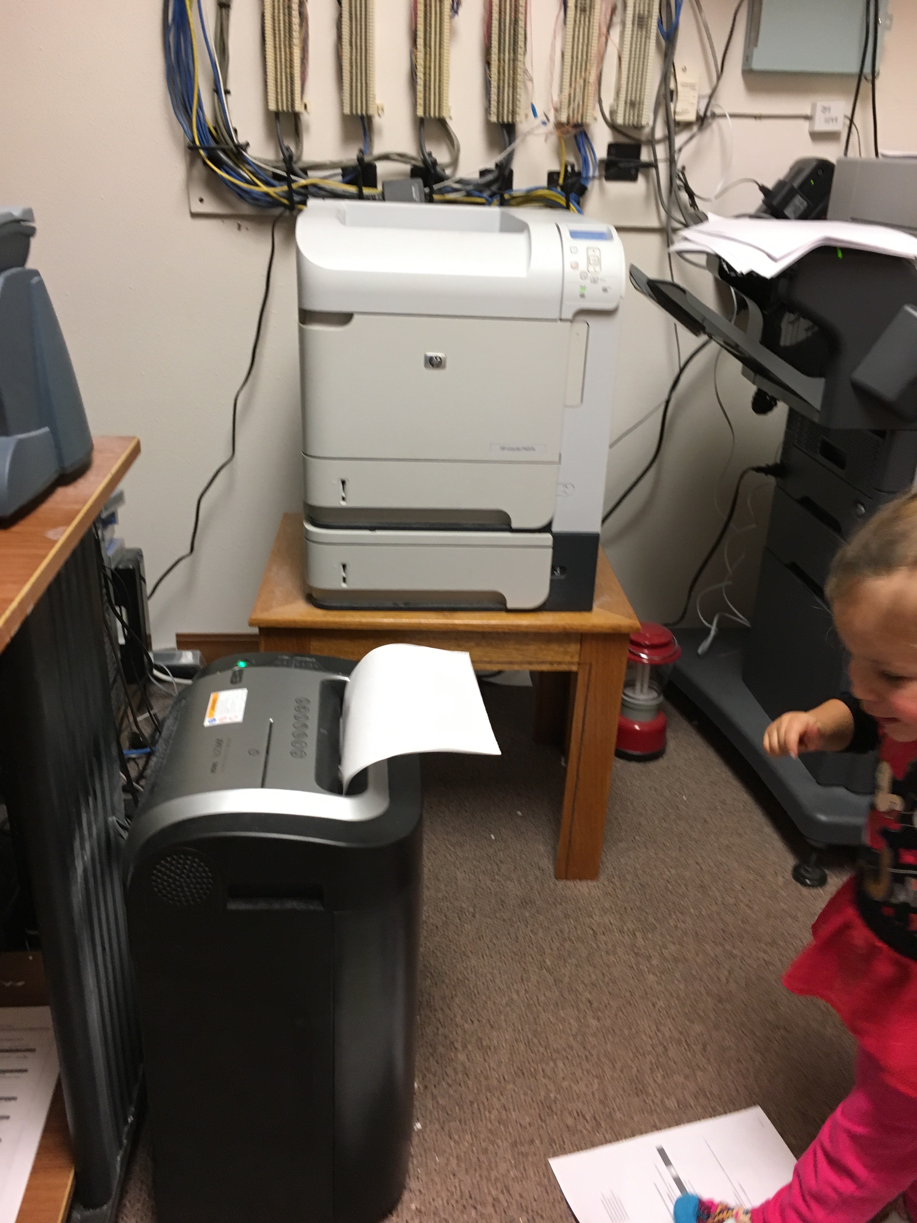 BB learned how to shred today… she was so cute she would “feed the monster” a paper and then run back and giggle and say oh goodness!!