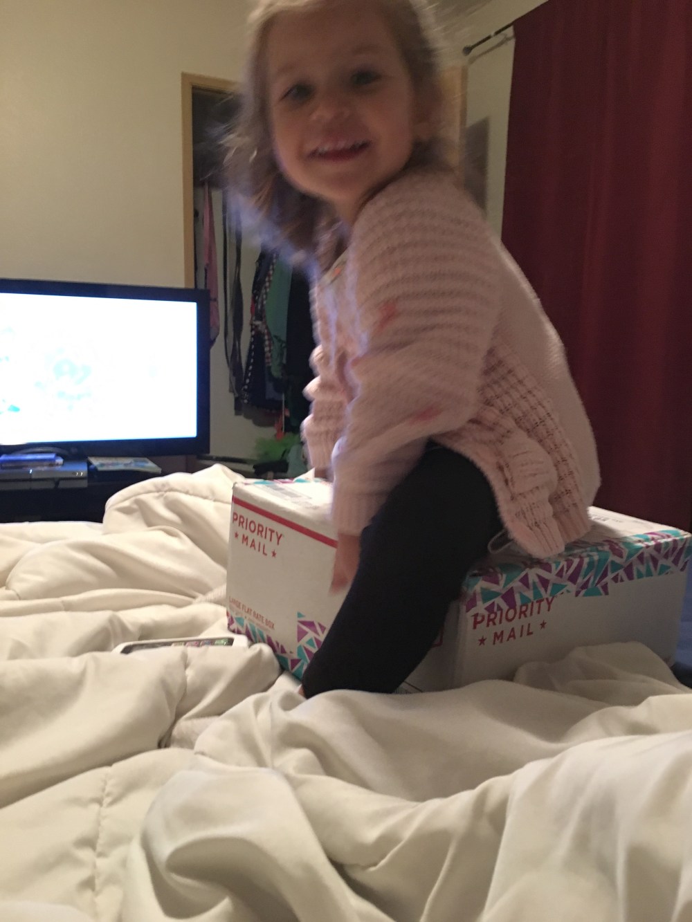 We got boxes in the mail and BB was guarding them with her life. She liked to stand and sit on the to claim them hers!!