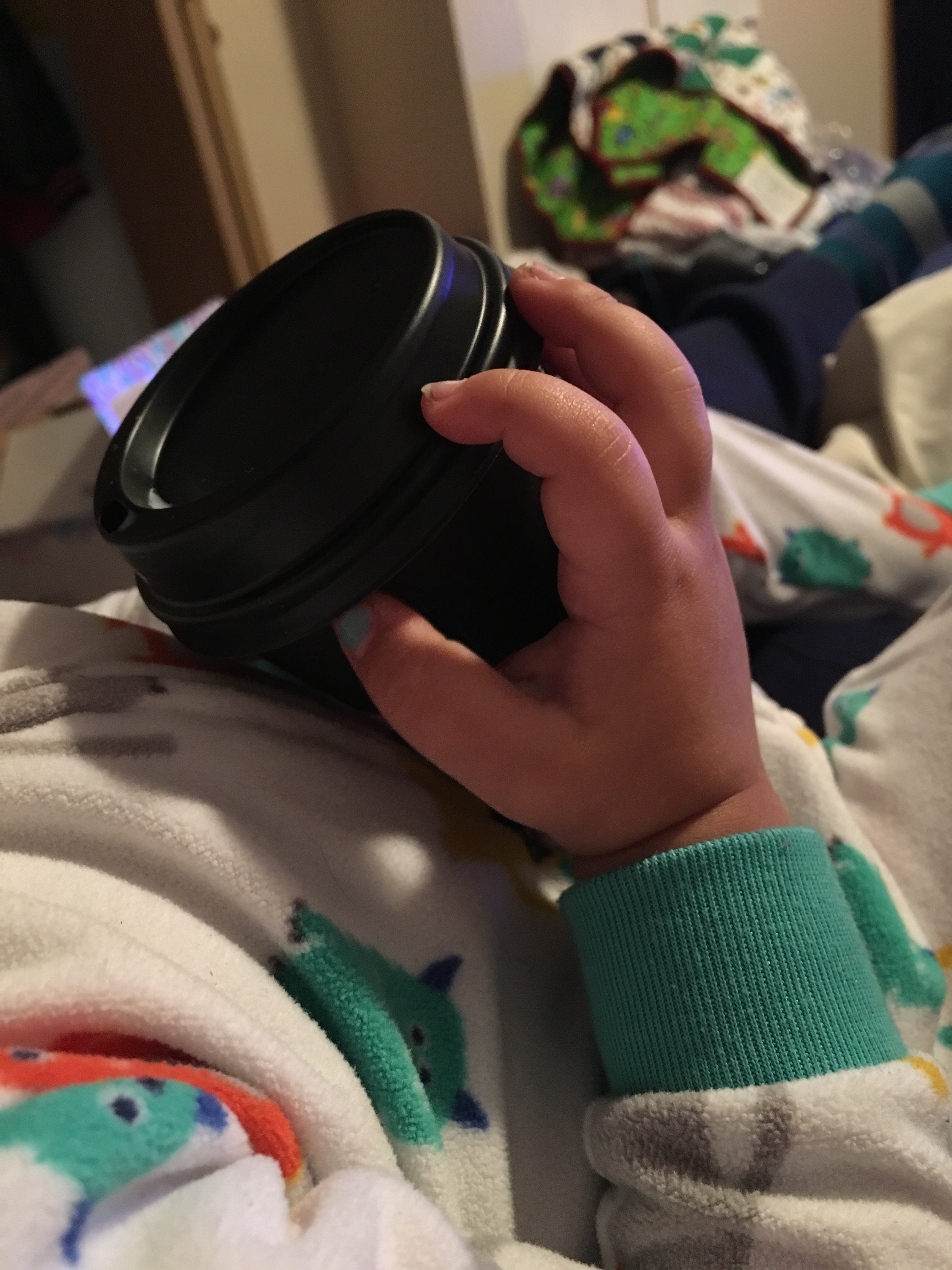 Saturday morning I met a friend for coffee and BB likes to “drink coffee” so I got her a tiny cup and she was so cute holding it and playing with the lid with her fingers, It made her seem so much more grown up!