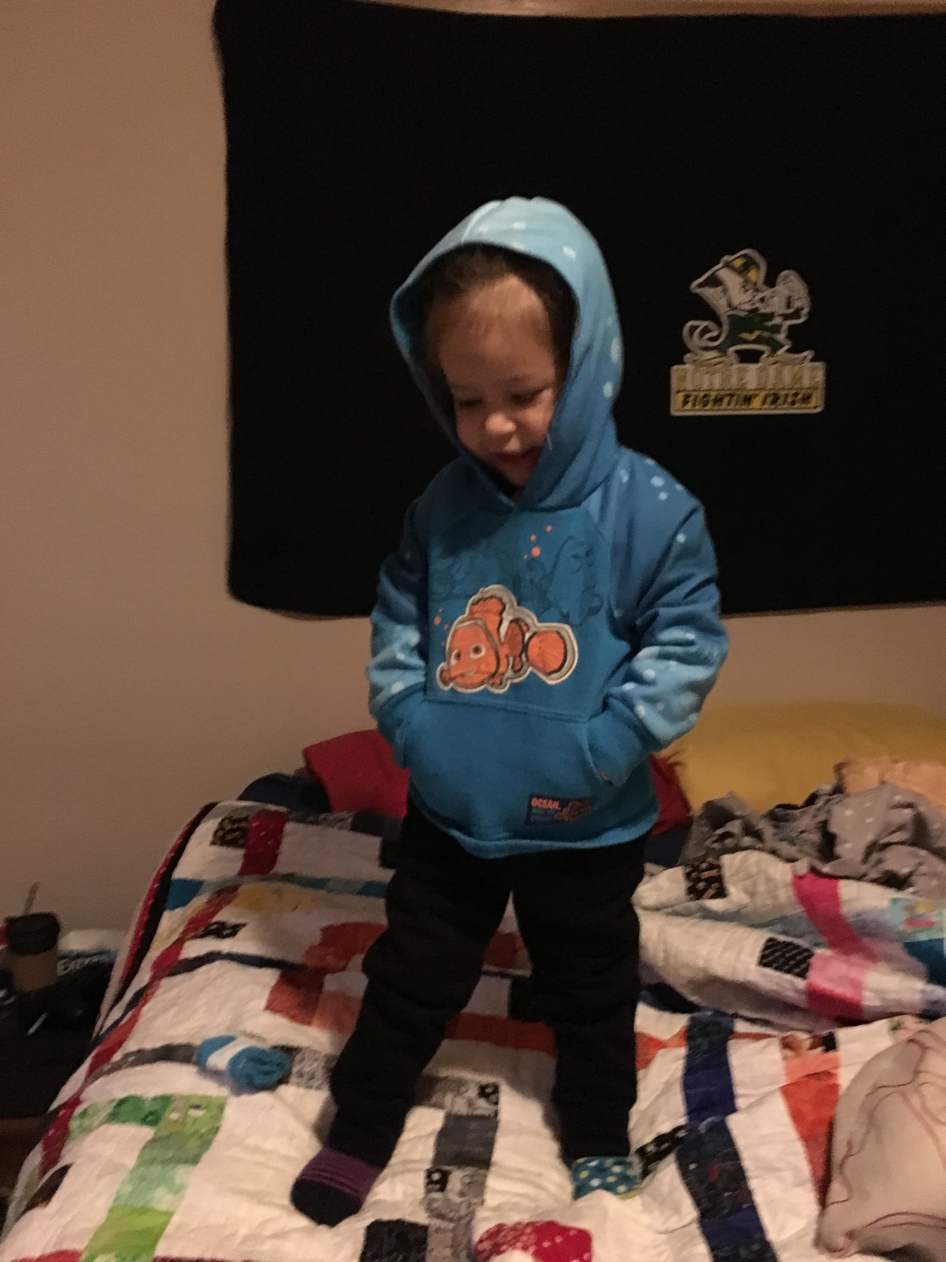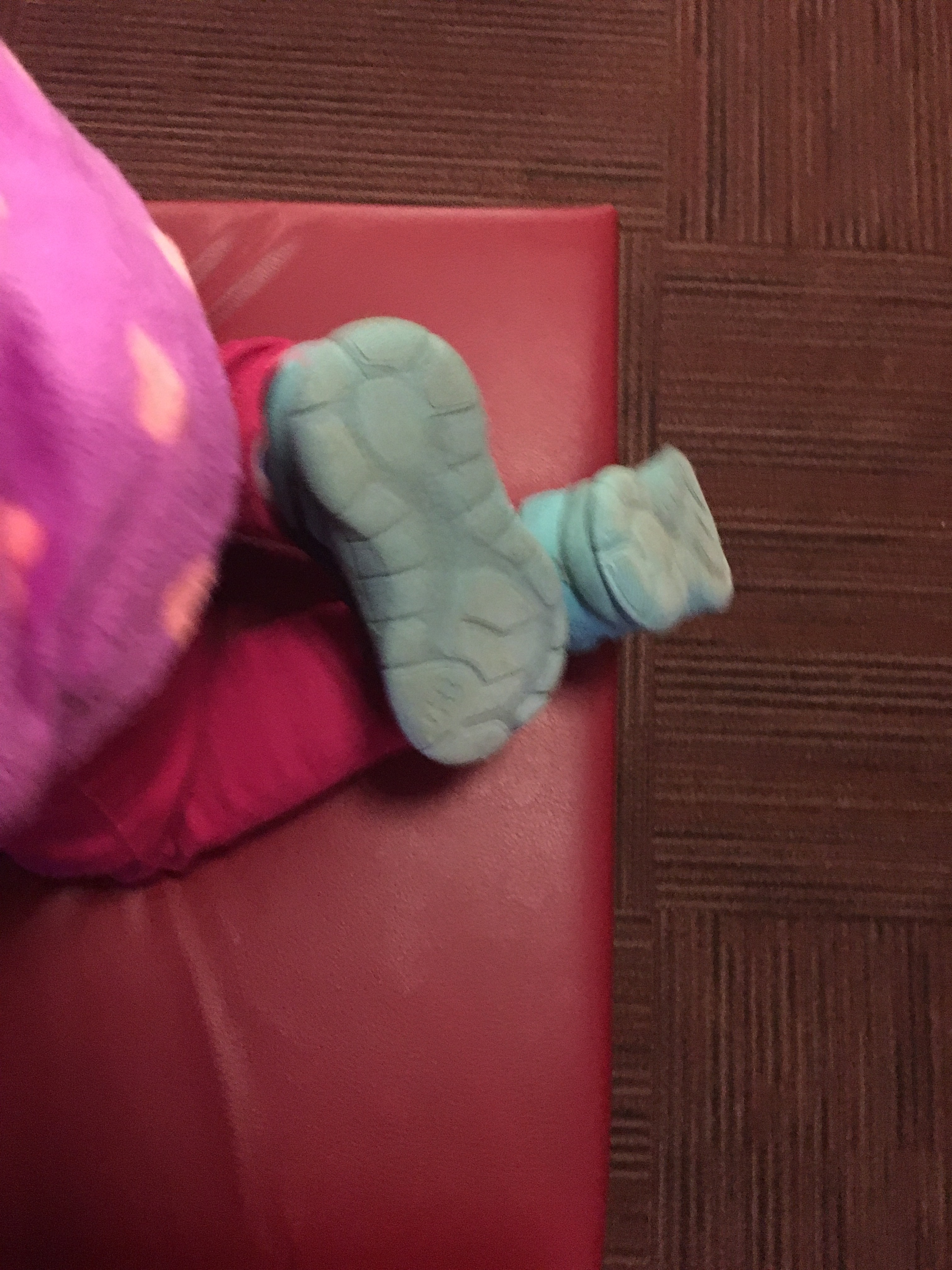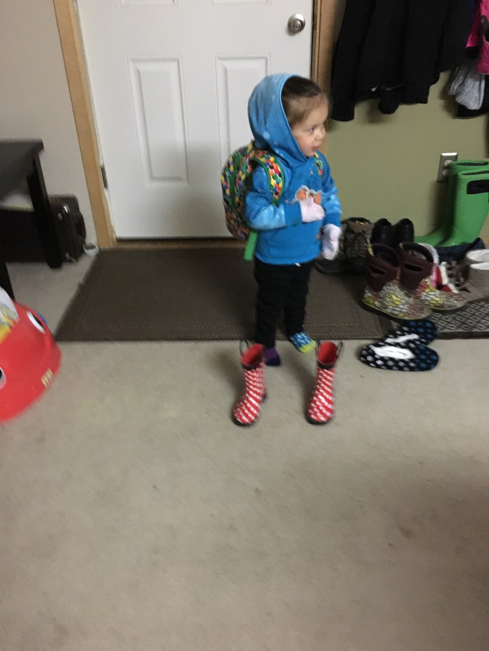 BB’s been on a kick wearing socks on her hands as mitten socks. She picks out a pair for her feet and a pair for her hands!