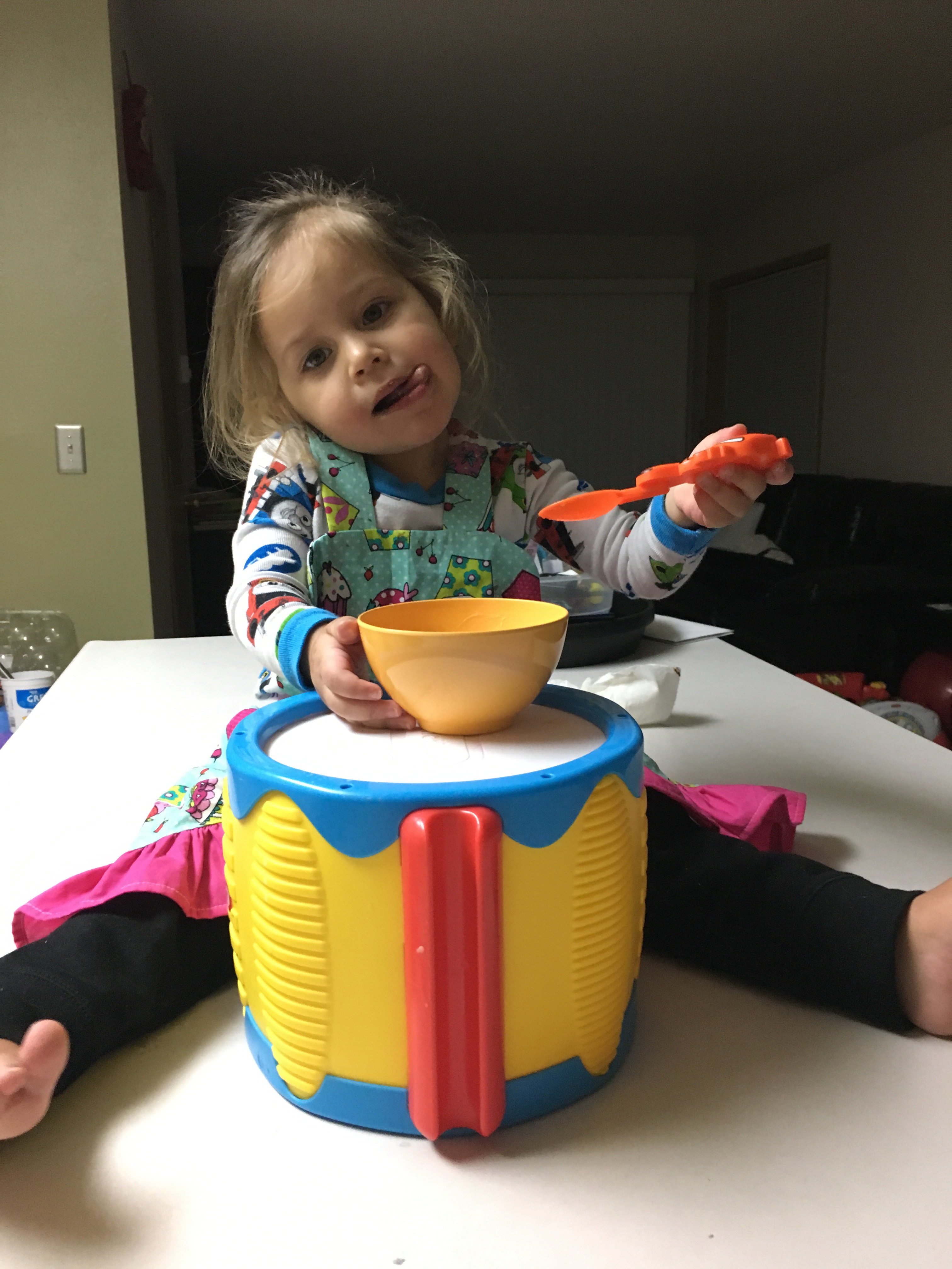 Most of the time BB insists on using forks and spoons most of the time but almost without fail we still end up with some in her hair or on her face!